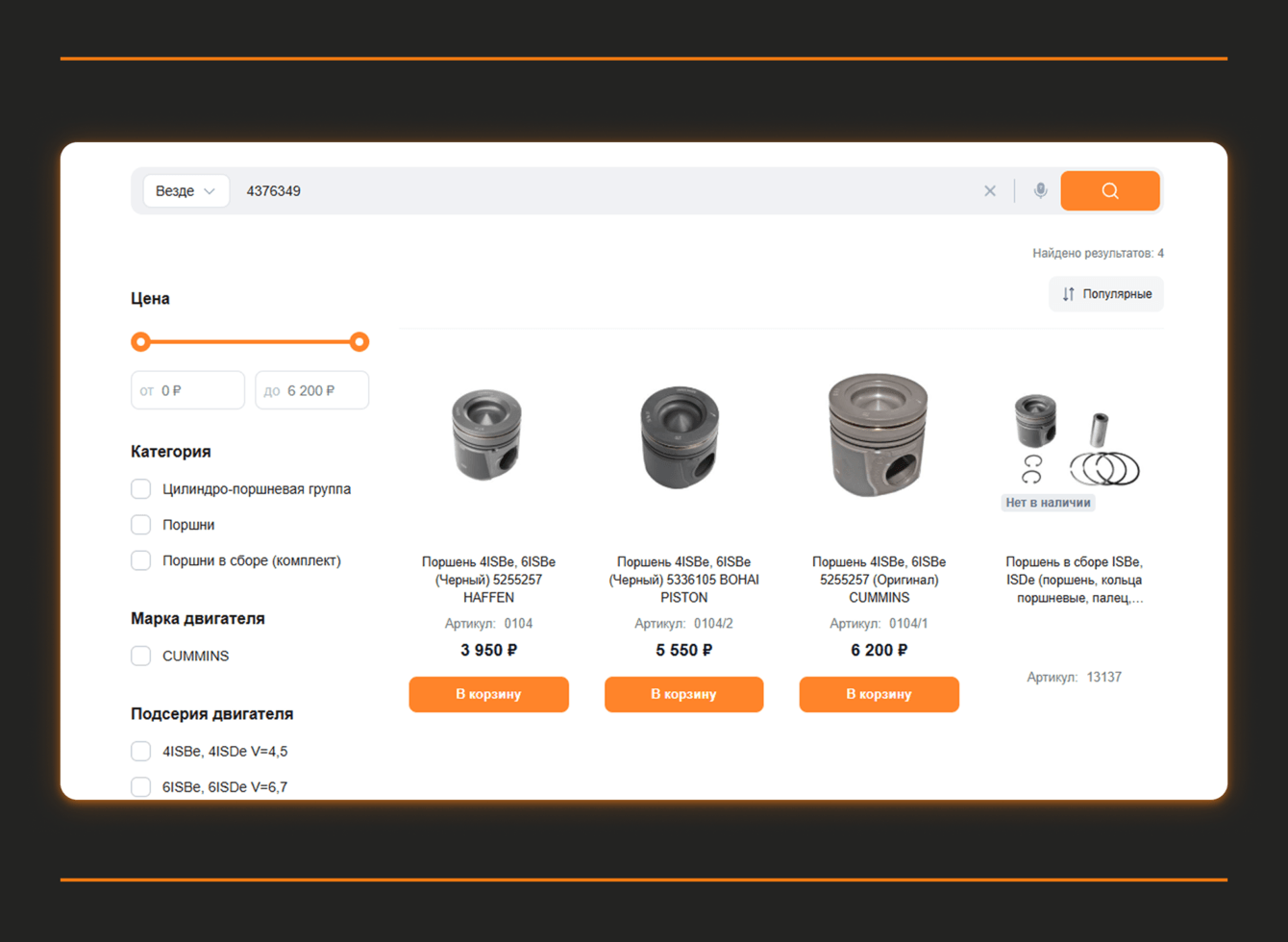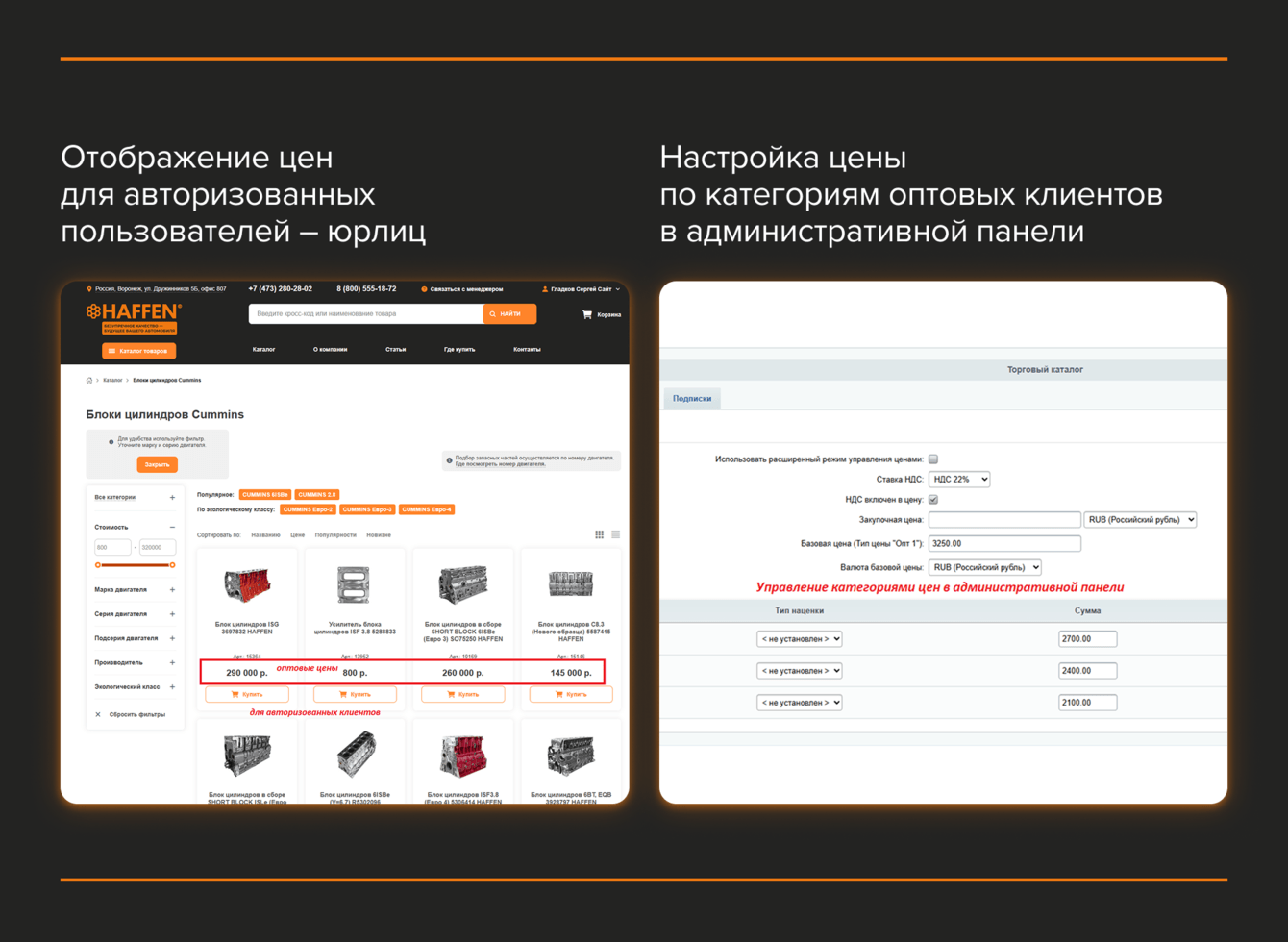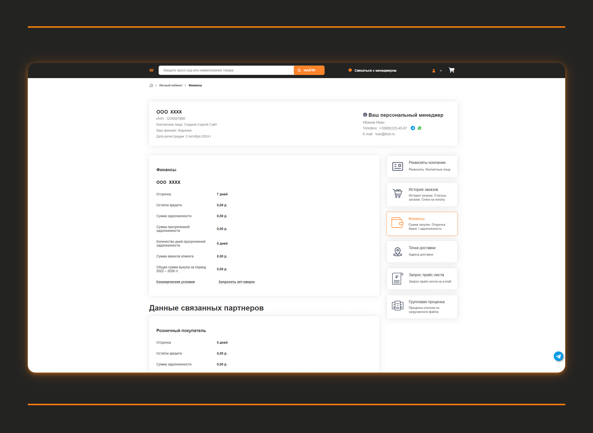 Портал был спроектирован так, чтобы клиенты могли работать максимально автономно. Это критично для B2B-аудитории — СТО, дилеров и корпоративных клиентов, которым важно быстро подбирать запчасти, видеть актуальные цены и остатки и оформлять заказы без постоянного участия менеджера.
