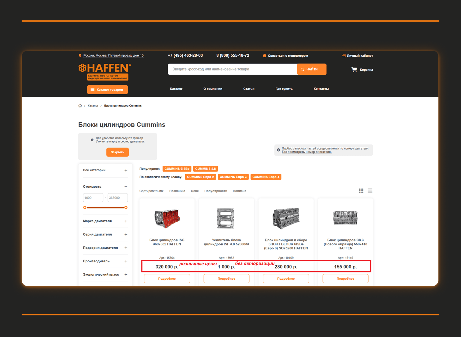 Компания HAFFEN более 10 лет работает на рынке и специализируется на производстве запасных частей для дизельных двигателей CUMMINS, КАМАЗ и WEICHAI. Основу ассортимента составляют запчасти — качественные аналоги оригинальных деталей, разработанные и произведенные с учетом реальных условий эксплуатации в российских климатических и дорожных условиях. Среди клиентов — владельцы грузового транспорта, СТО, официальные дилеры, а также аграрные предприятия.
