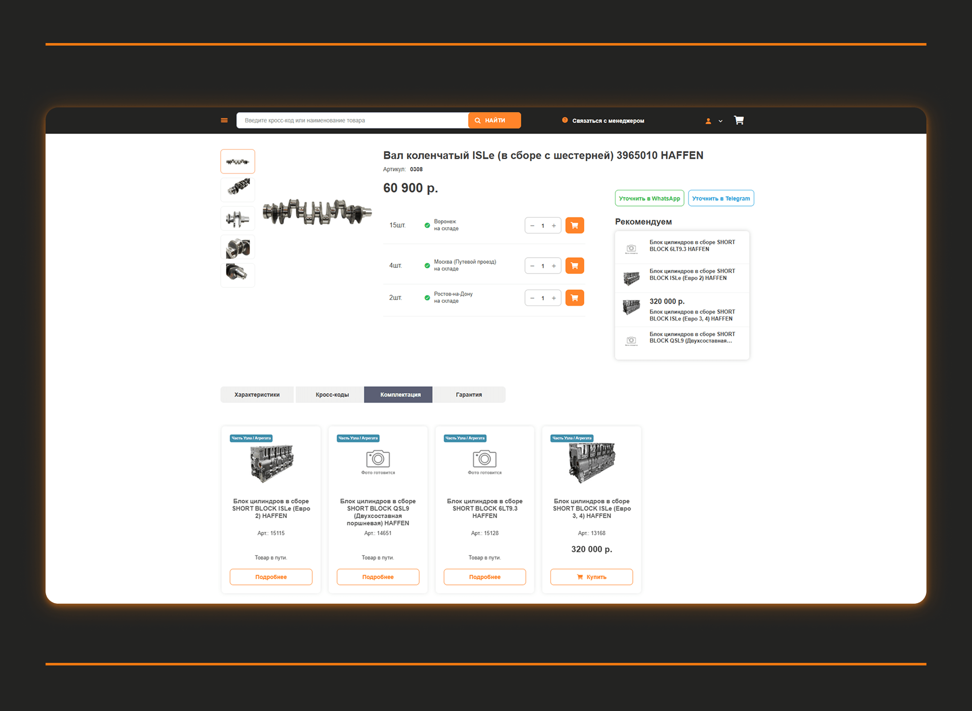 • возможность видеть связанные товары и агрегаты в карточке детали;