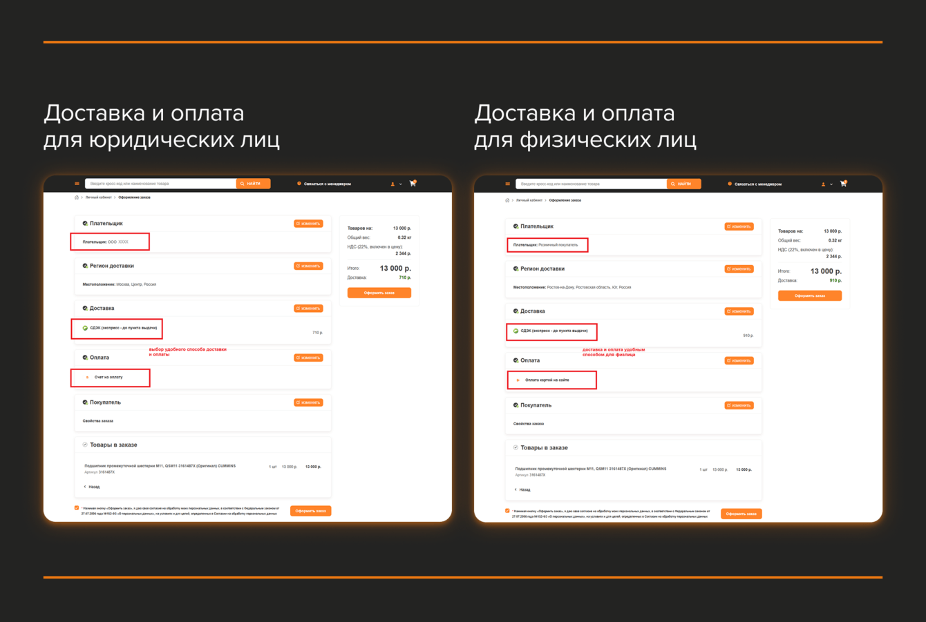 • оформление заказа с отображением суммы и сроков ещё до подтверждения.