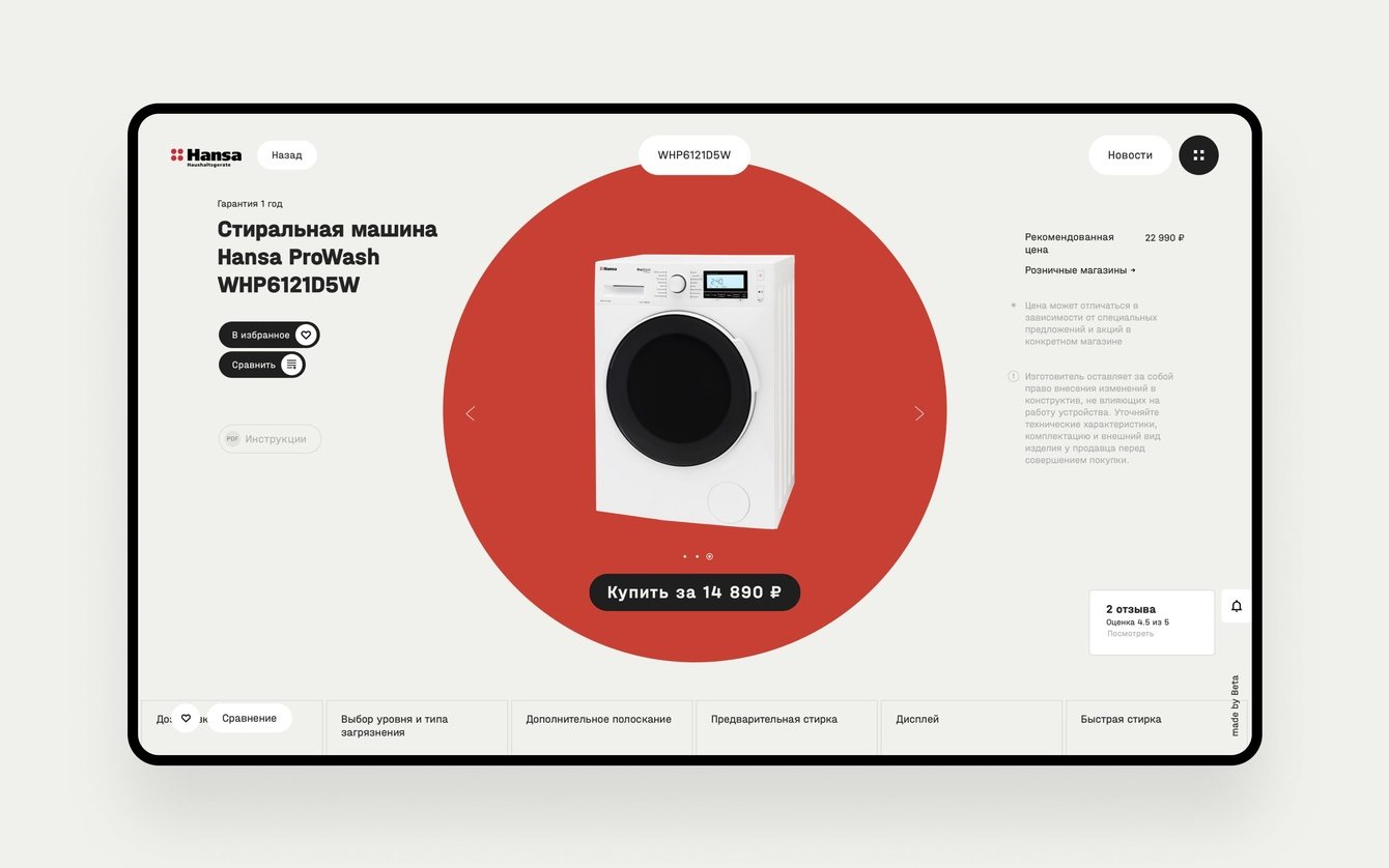 Чтобы решить эту задачу, команда беты переосмыслила сам формат сайта производителя бытовой техники. Это больше не "сайт с каталогом" – hansa.ru и есть каталог.