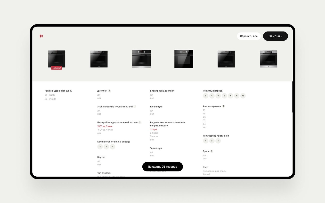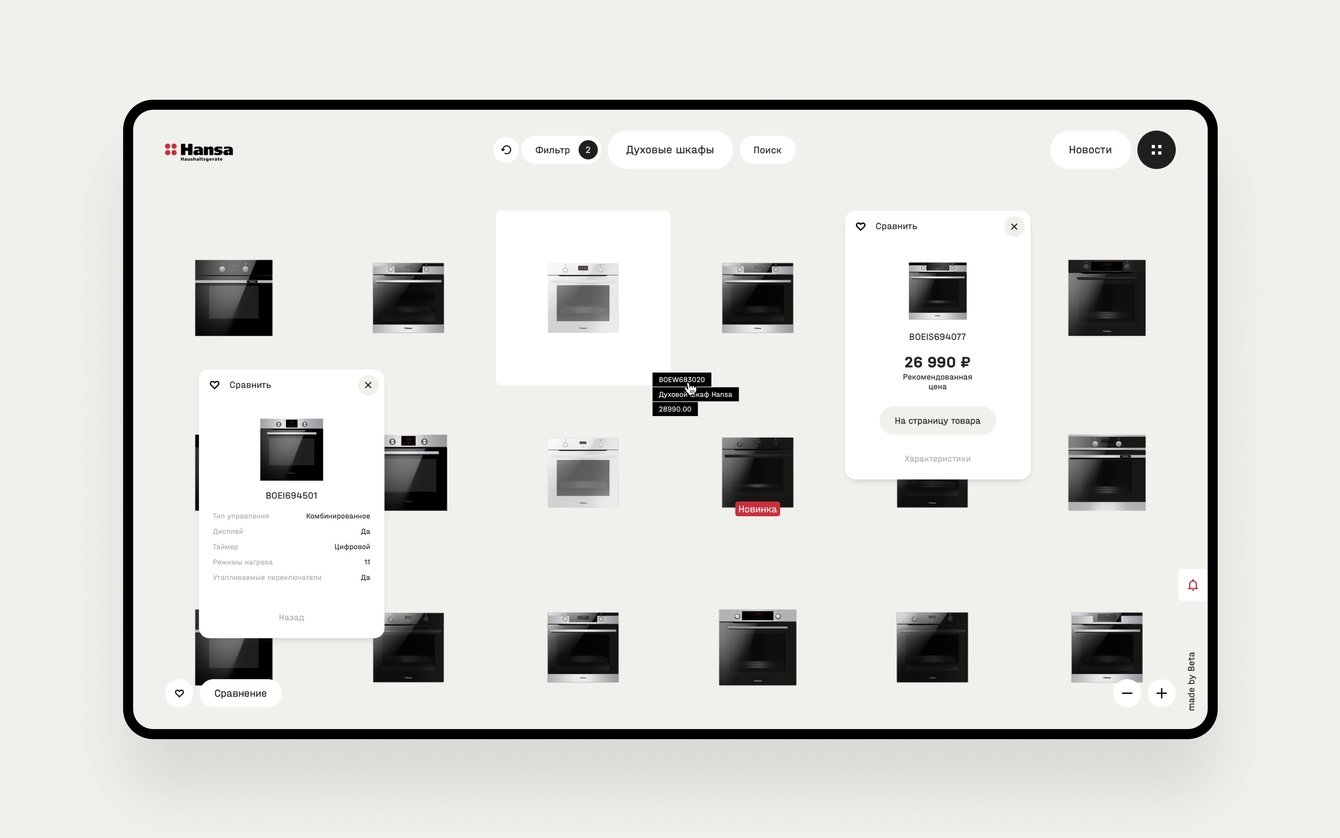Переосмыслить сайт Hansa – популярного европейского бренда бытовой техники. Духовки, плиты, холодильники – несколько тысяч актуальных и архивных товаров. Перед командой беты стояла задача сделать поиск, сравнение и выбор среди такого многообразия максимально удобным.