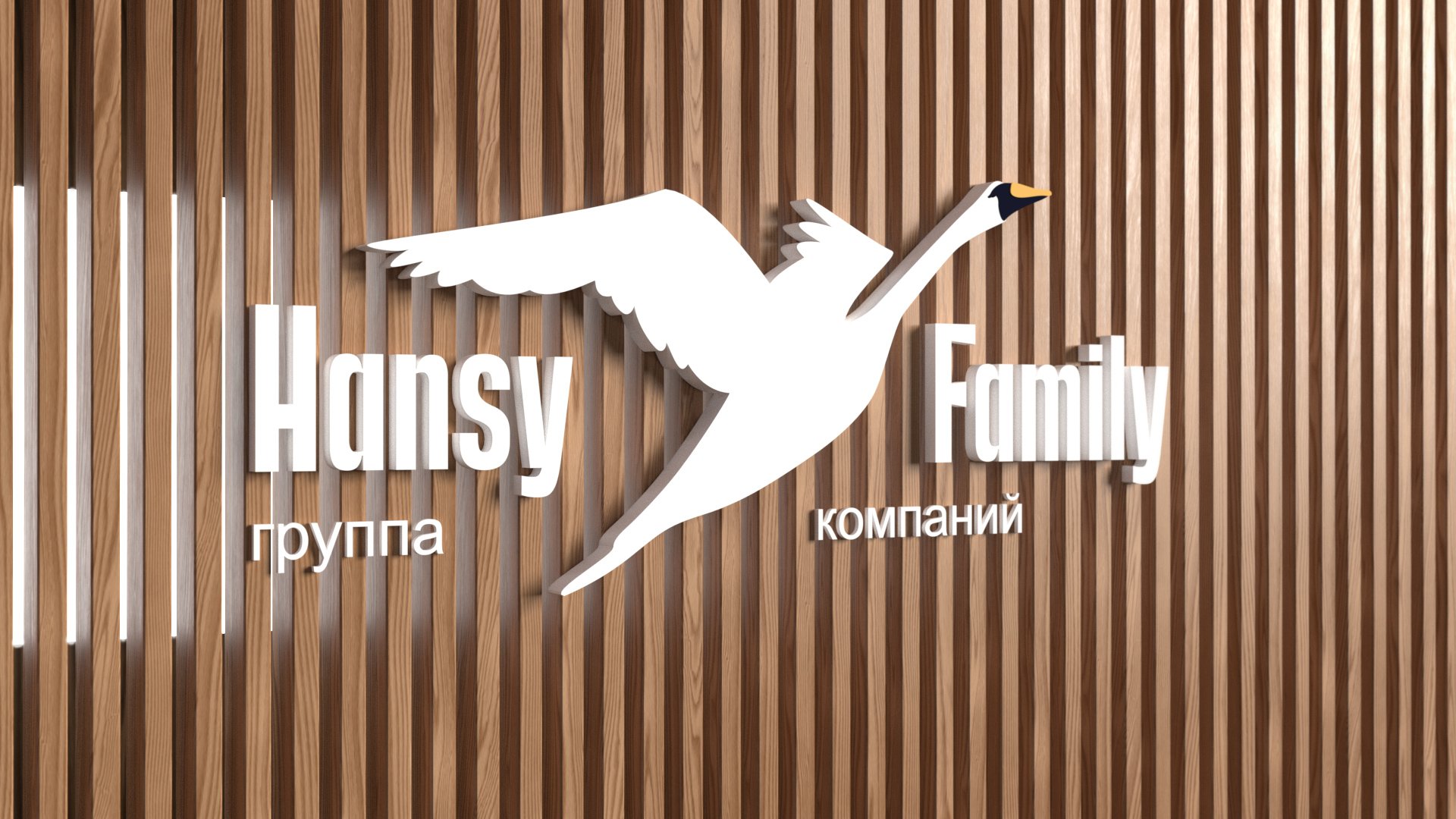 В знаке логотипа используем образ лебедя, чтобы поддержать концепцию названия. Он изображён в движении, чтобы сделать знак динамичным. Птица становится между двумя словами в названии компании и слово Hansy оказывается под крылом — метафора для всех подопечных группы.