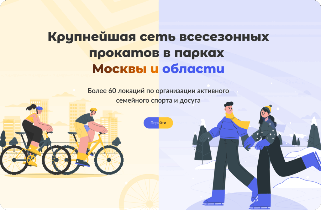 Сделать сайт, который подстраивается под сезон и конкретную точку проката, подтягивает данные из 1С и облегчает работу команды.