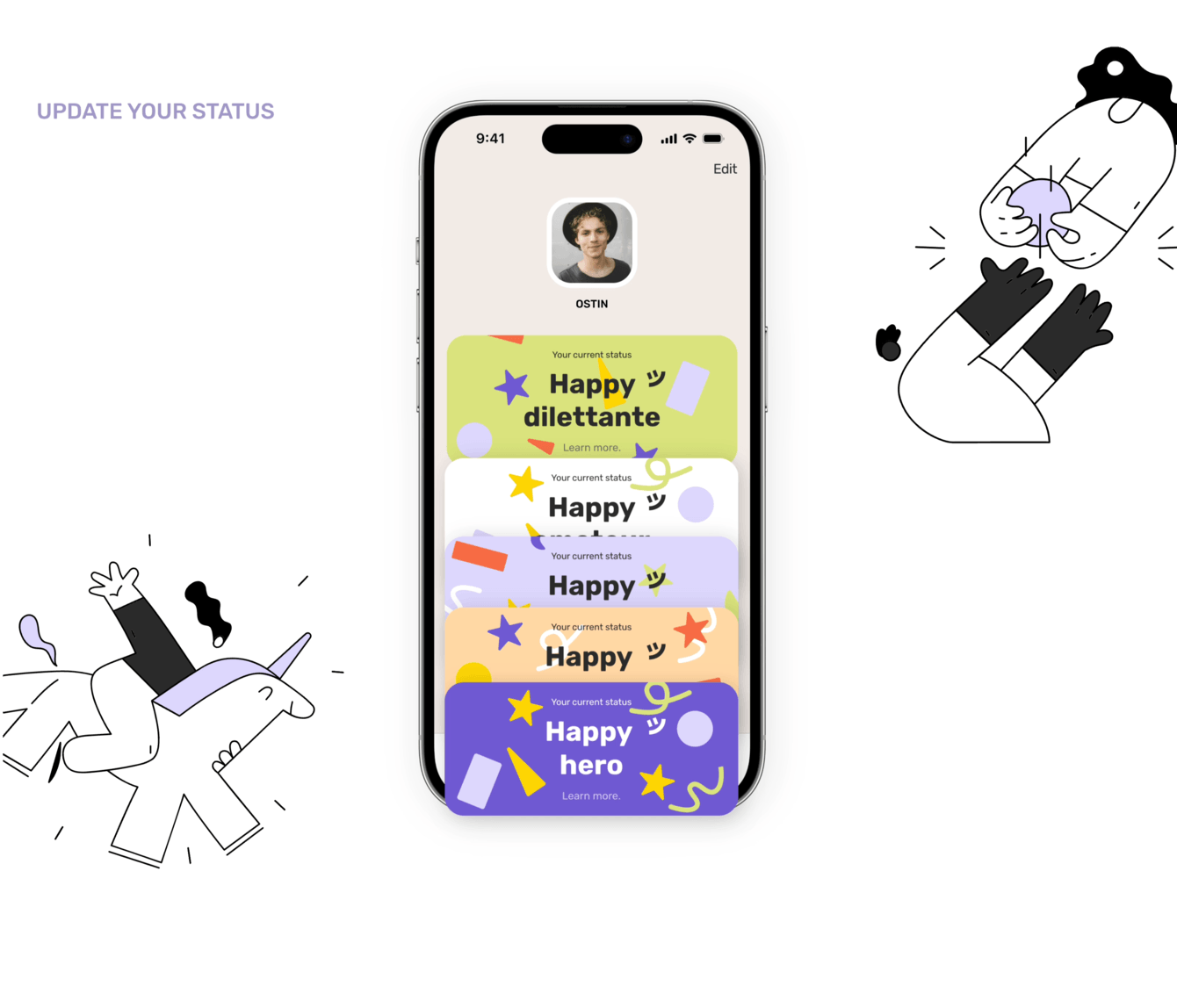 - Темная тема не соответствовала концепции «счастья» — требовался пересмотр визуального стиля.