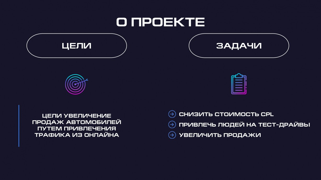Задачи: уменьшить стоимость CPL, привлечь людей на тест-драйвы, увеличить продажи.