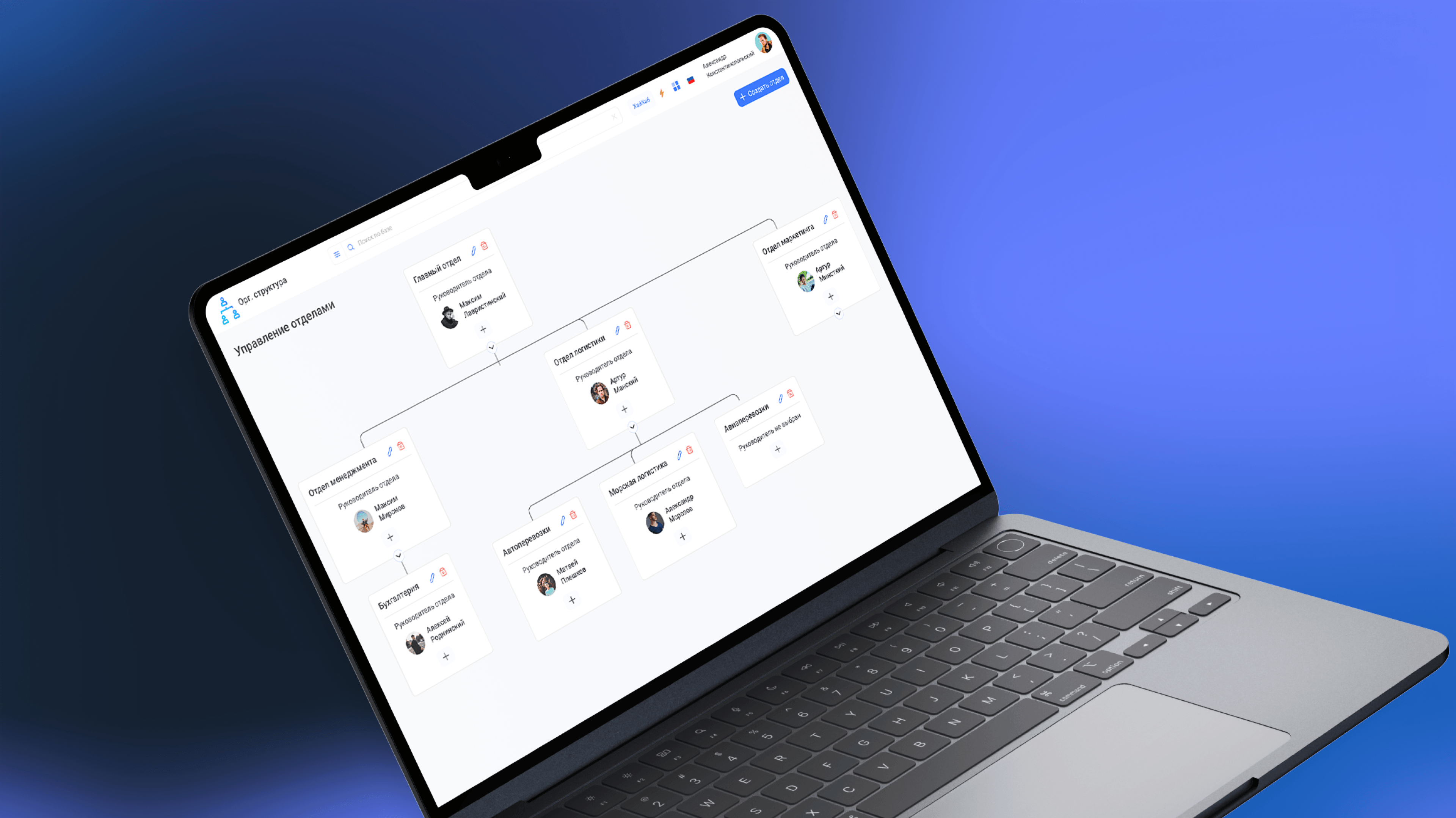 Живая визуализация иерархии компании. Модуль позволяет видеть зоны ответственности и функциональные взаимосвязи между сотрудниками и отделами, что особенно важно для новых сотрудников. Каждая должность в системе в свою очередь имеет определенный набор компетенций, что делает карьерные треки прозрачными и помогает HR-командам нанимать и растить подходящих кандидатов и закрывать потребности бизнеса.