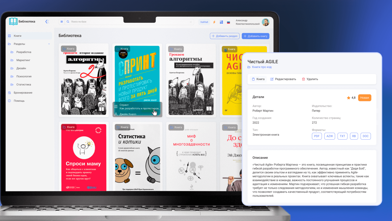 В коллаборации с крупными издательствами мы создали новое предложение: готовый каталог лицензированных книг в библиотеке (10 000+ книг в каталоге). Это предложение ориентировано на компании, которые хотят получить уже сформированную объемную библиотеку с деловой и художественной литературой.