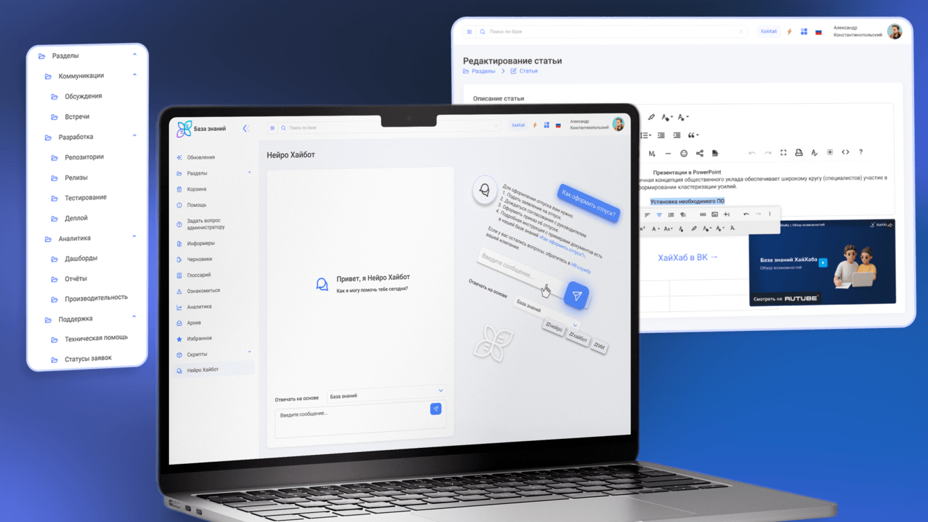 В 2025 году мы добавили возможность бесшовного «переезда» базы знаний из других систем в ХайХаб. Специалисты системы могут осуществить переезд для компаний, сохранив все материалы и структуру или создав новую.