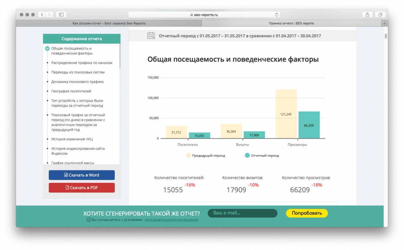 SEO-reports — сервис для подготовки наглядных отчетов о продвижении сайтов. С его помощью интернет-маркетологи и сеошники показывают клиентам результаты своей работы.