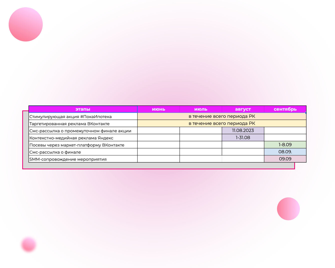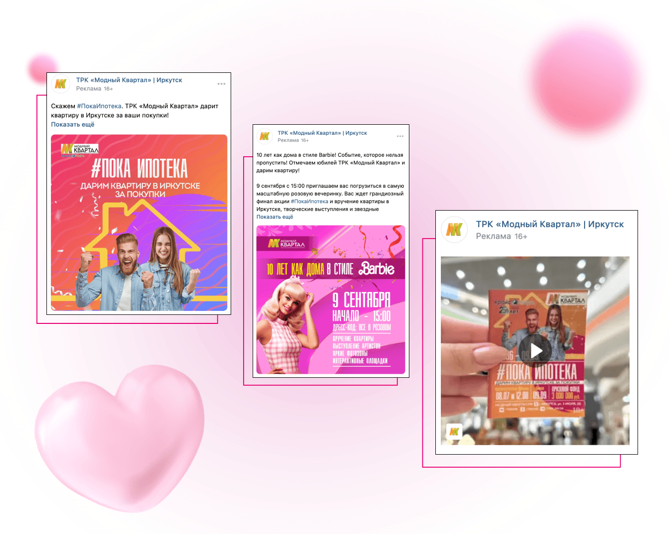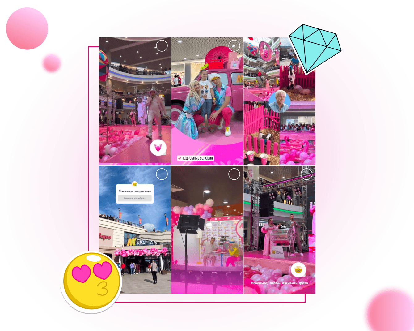 Визуально мы выделили посты и stories в лентах социальных сетей ТРК фирменной плашкой, которую создали для этого события, и использовали много розового. Тренд лета 2023 - очень много розового!