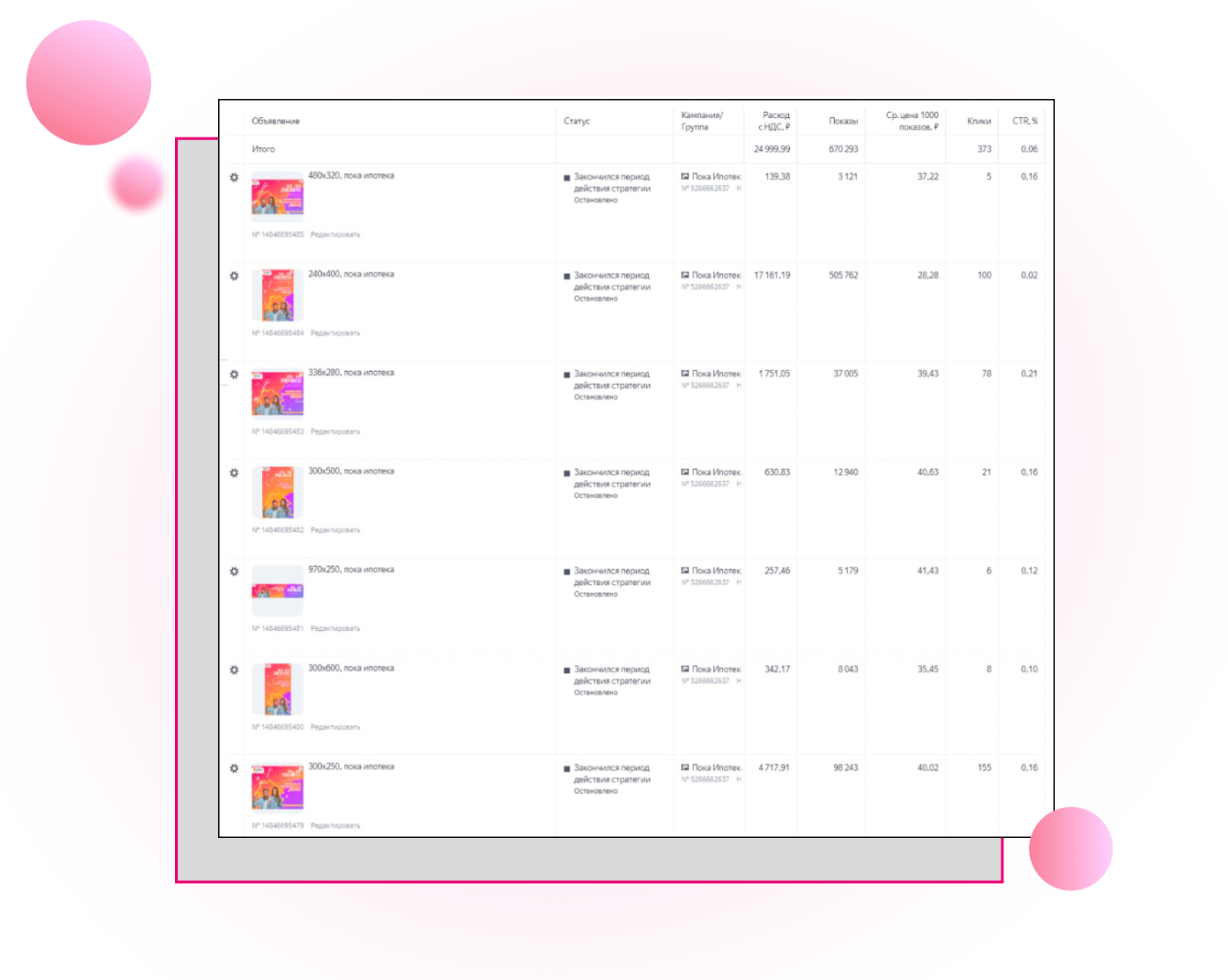 Рекламная кампания получила следующие результаты: