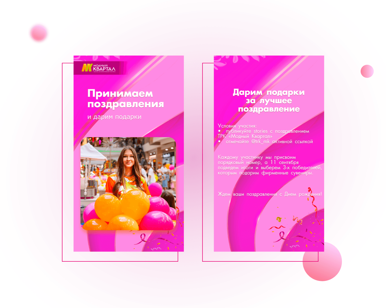 За несколько дней до мероприятия мы запустили вирусный розыгрыш «Поздравь Модный с днем рождения». Пользователи писали поздравления, вспоминали события связанные с ТРК, публиковали свои фото из комплекса и шерили основную афишу с анонсом праздника.