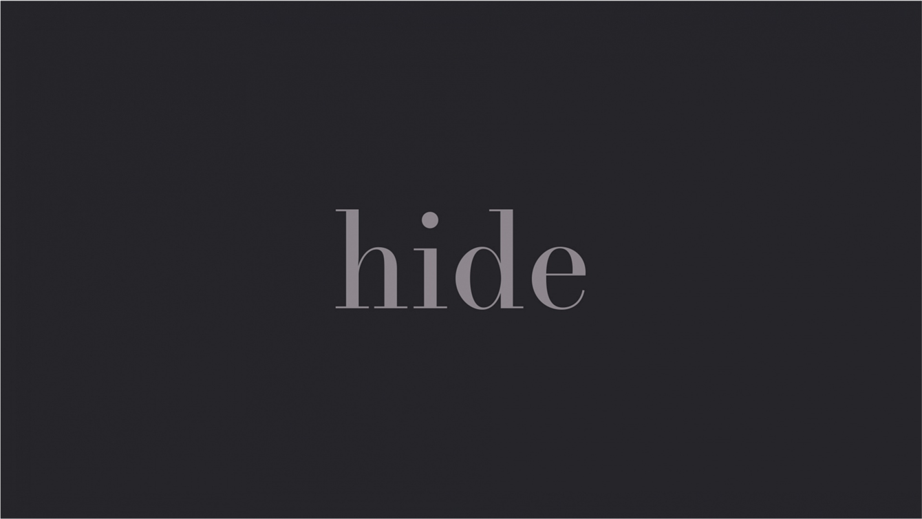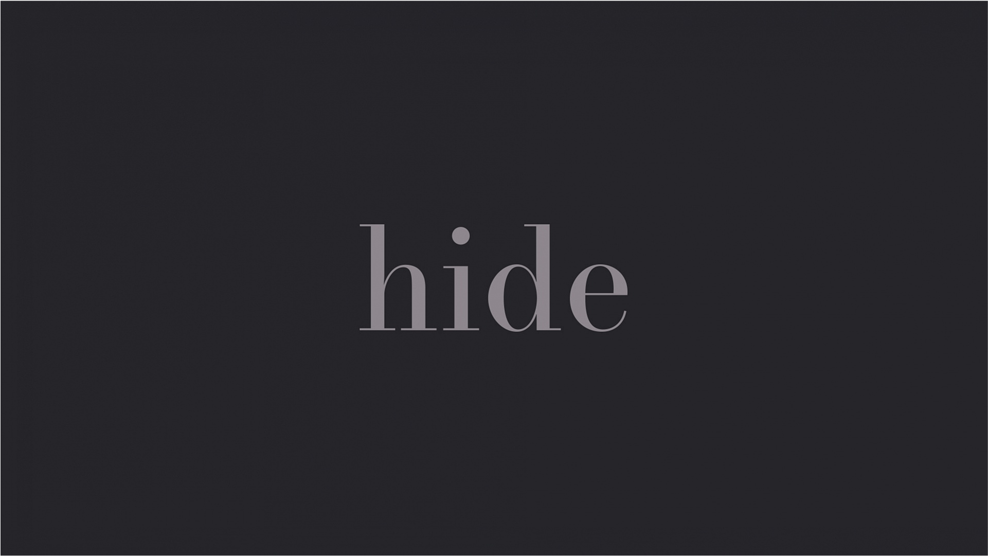 Проект концентрируется на приватности и комплексности. Высокий уровень закрытости и безопасности достигается за счет сохранения комфортной дистанции с внешним миром. Лигатура, использованная для логотипа сочетает в себе сразу два значения: “высокий” от англ. “high”, и “спрятаться” от англ. “hide”. Оба этих смысла гармонично транслируют потребителю, что он может найти свое укромное место в одной из высоток объекта:WestDale, ParkLane и RiverSide. Комплексность обеспечивается за счет “сервиса 360°” — то есть Hide позволяет закрыть любую потребность своих резидентов в пределах территории ЖК.