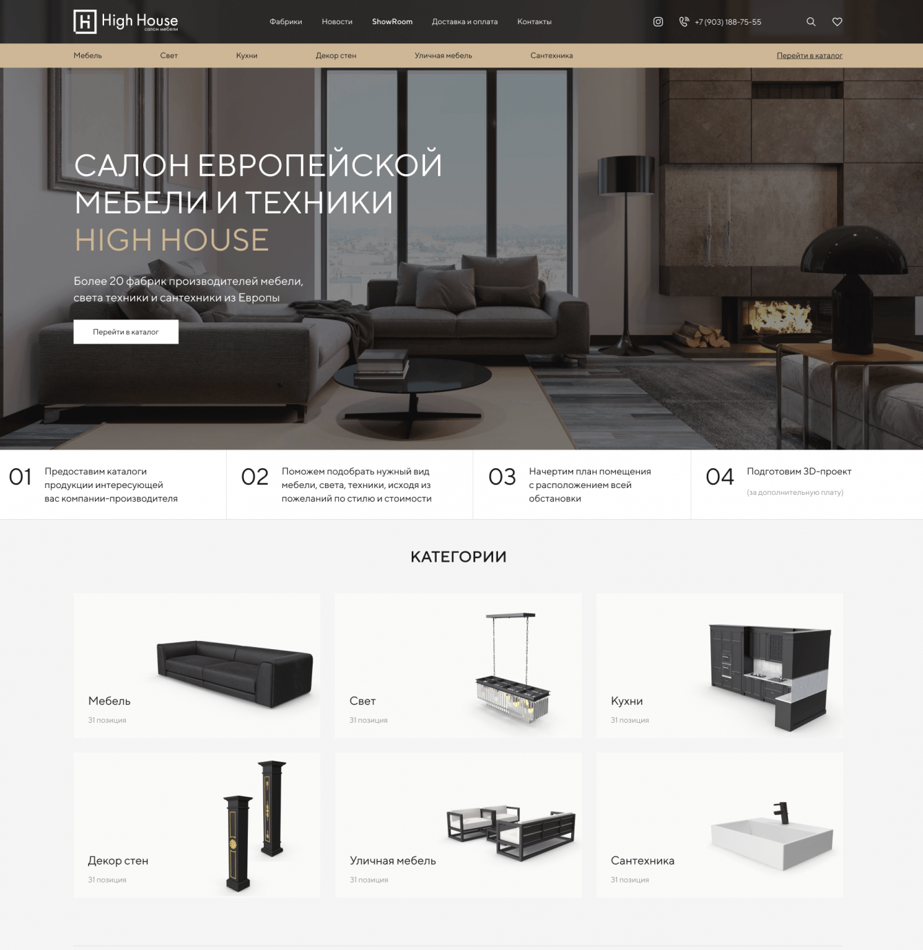 Разработка стильного интернет магазина элитной европейской мебели, для привлечения новых клиентов и расширения аудитории и увеличения продаж.