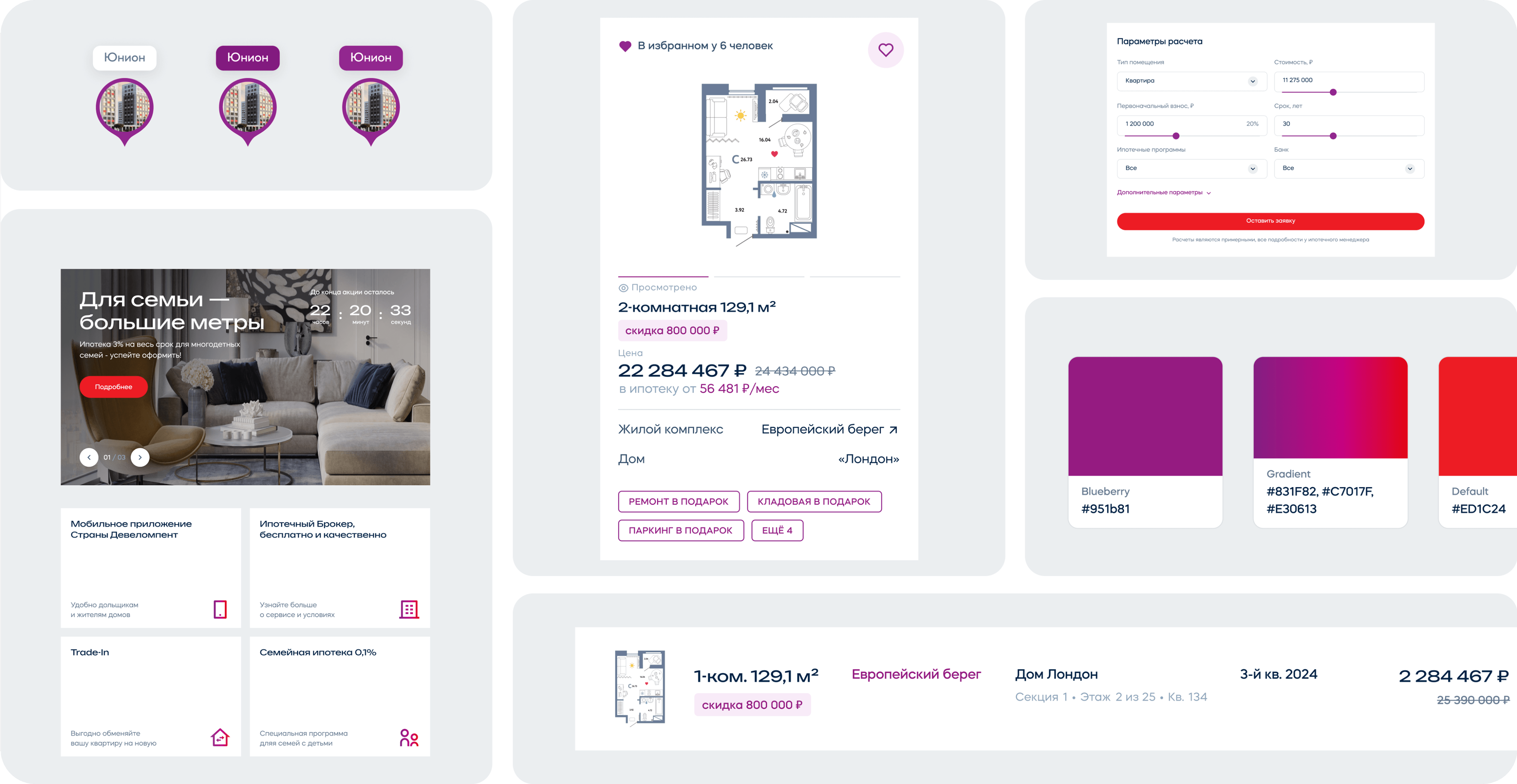 На основе концепции мы создали дизайн систему всех визуальных элементов сервиса, благодаря которой обеспечивается единообразие интерфейса и минимальные затраты времени на разработку.