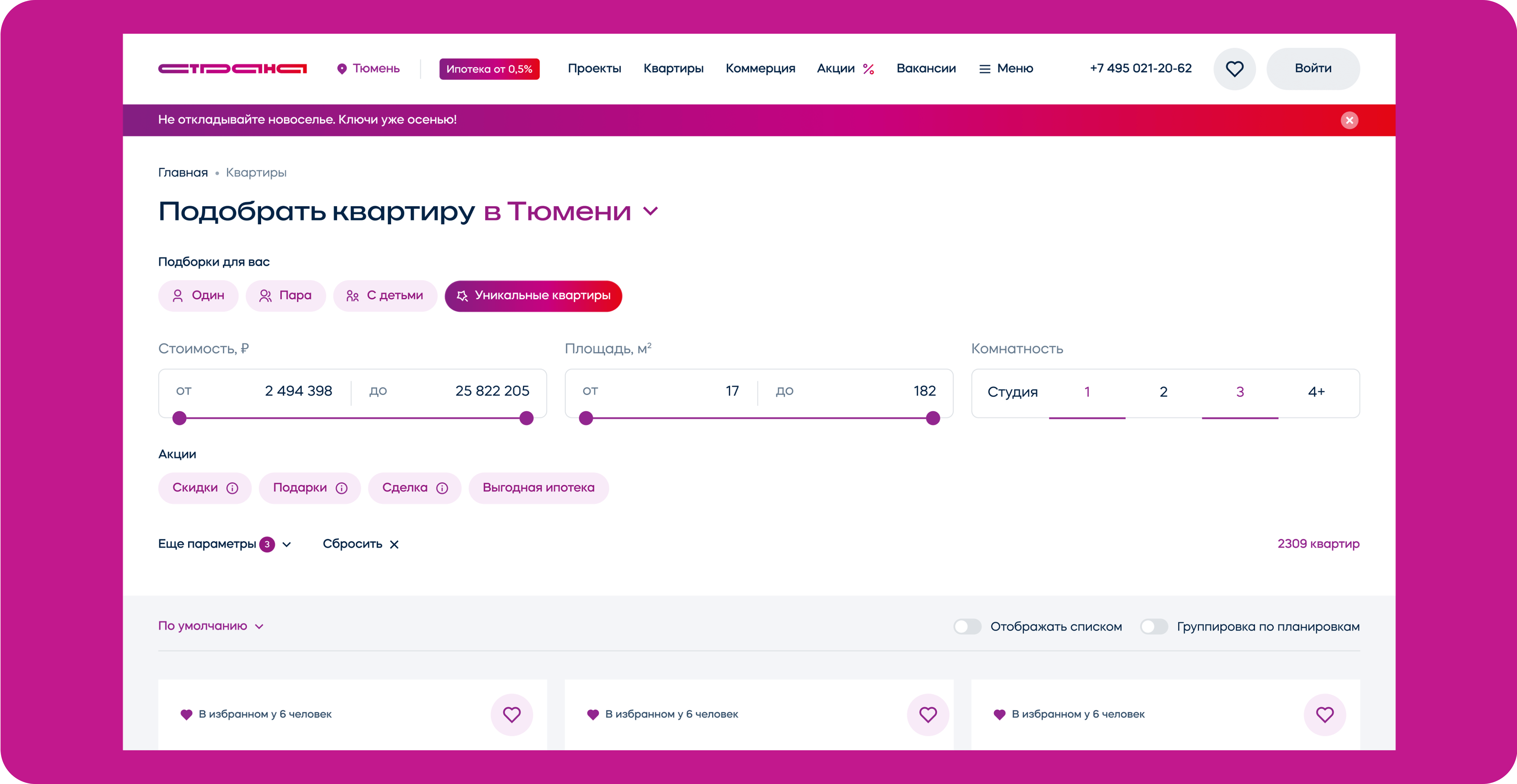 О клиенте: «Страна Девелопмент» — крупный застройщик федерального уровня. Компания входит в топ-10 российских девелоперов, строит жилые комплексы с инфраструктурой и работает в Тюмени, Москве, Новосибирске и Екатеринбурге.