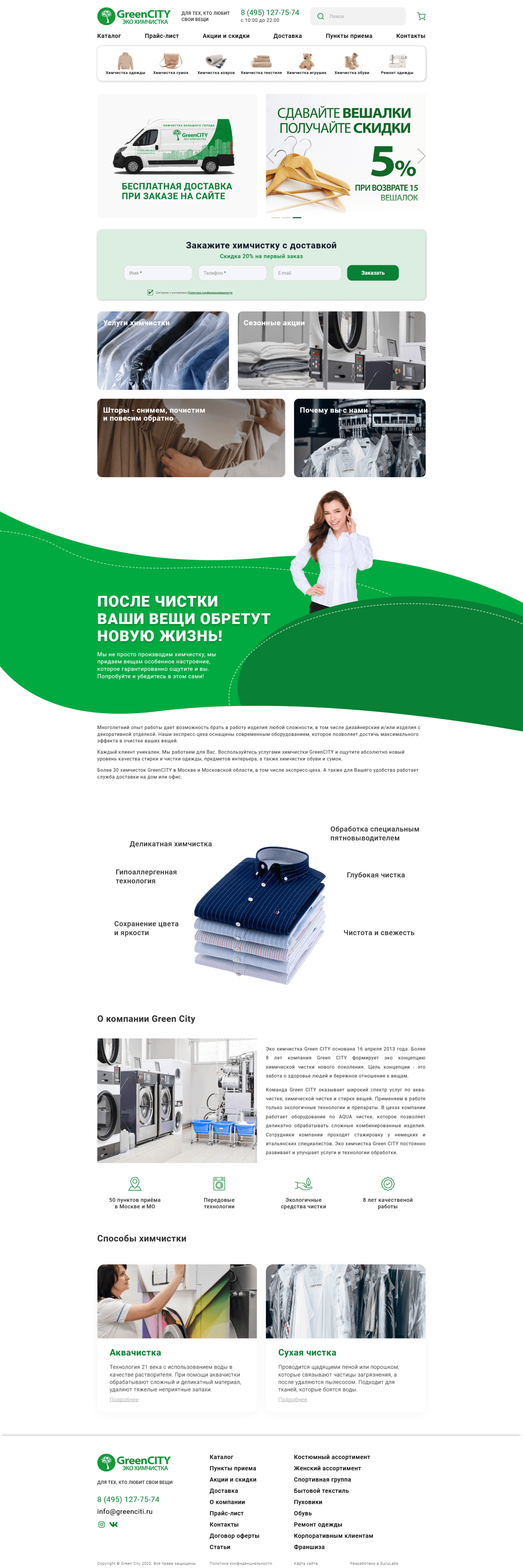 Компания GreenCITY, сеть экохимчисток с множеством пунктов приёма по Москве и области, обратилась с запросом на создание современного и интуитивно понятного сайта. Основные требования: