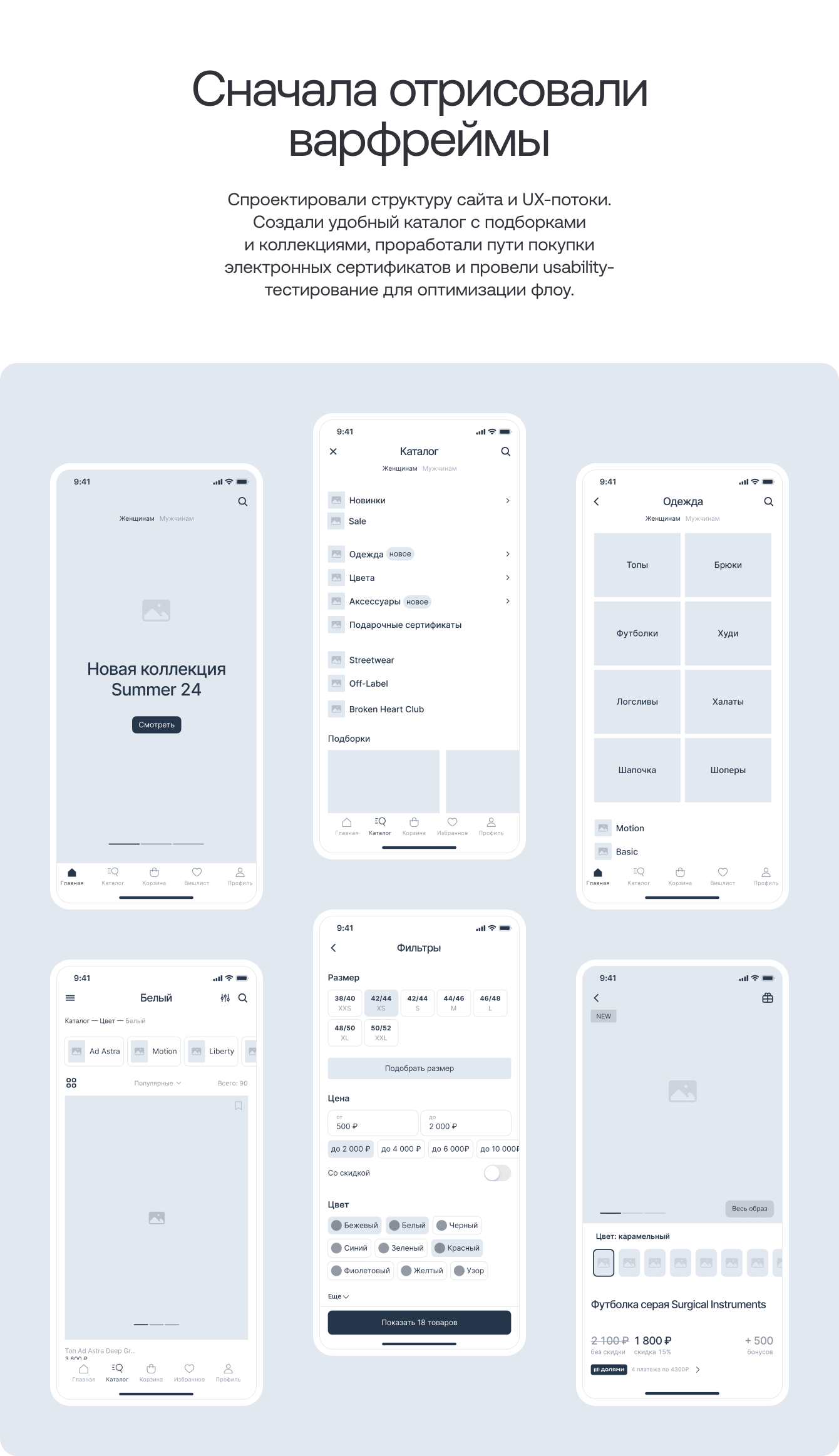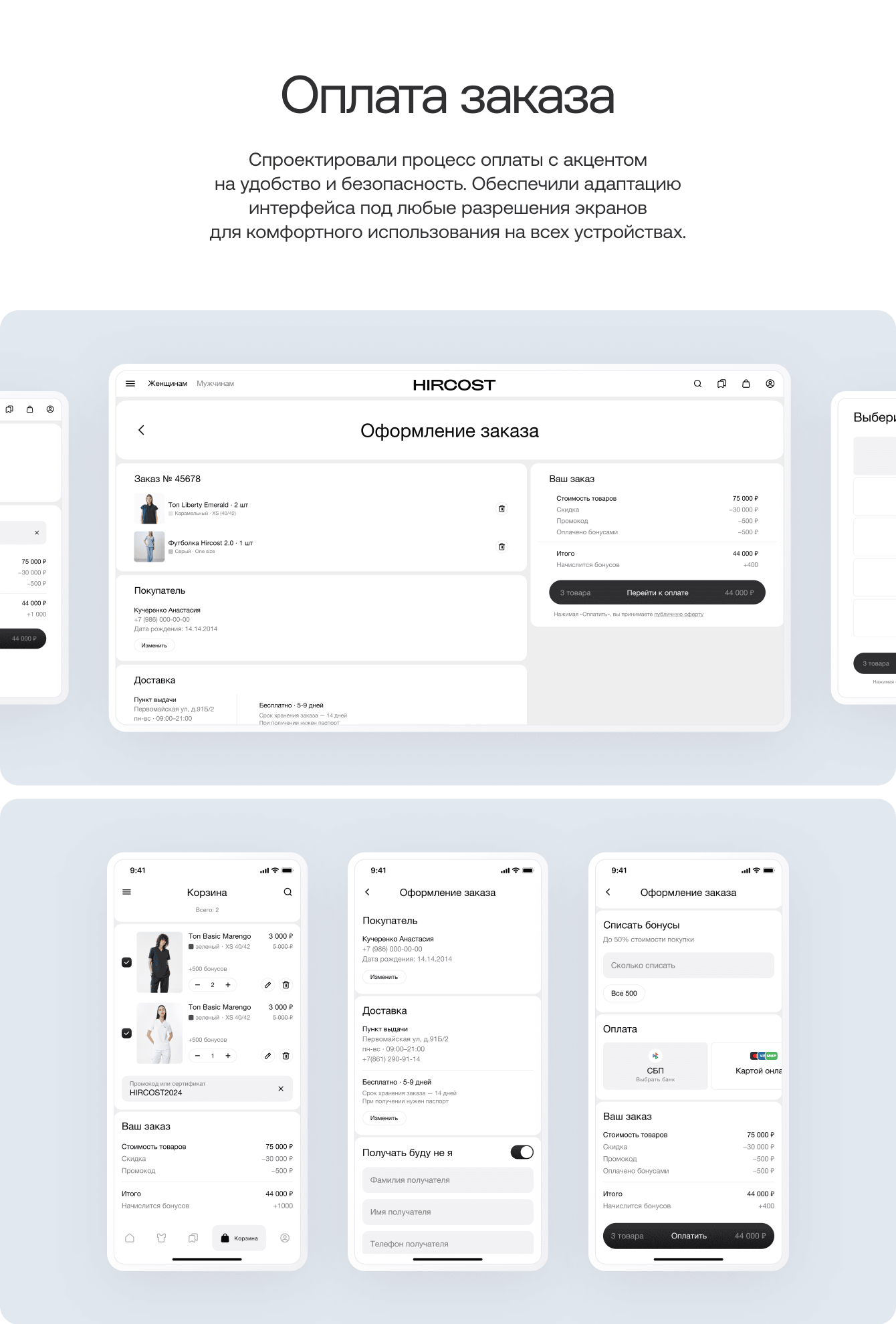 Особое внимание уделили проектированию каталога с удобной навигацией, учитывающей разнообразие коллекций и подборок. Интегрировали электронные подарочные сертификаты с уникальным дизайном и провели UX-тестирование, чтобы оптимизировать пользовательский опыт и сохранить единый визуальный стиль на всех этапах взаимодействия.