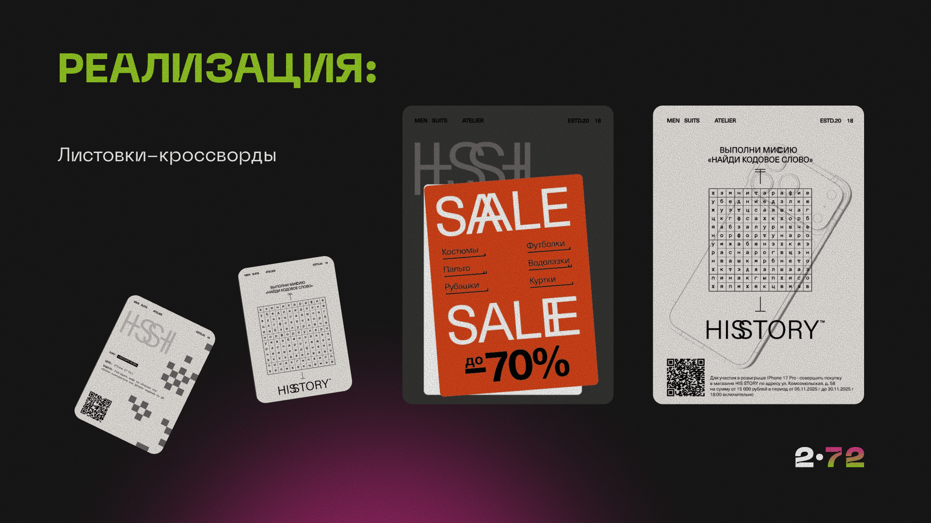 Перед нами стояла задача: выделить бутик мужской одежды HISSTORY на фоне общей агрессии «Черной пятницы», где каждый кричит о скидках, а маркетплейсы предлагают всё и сразу.