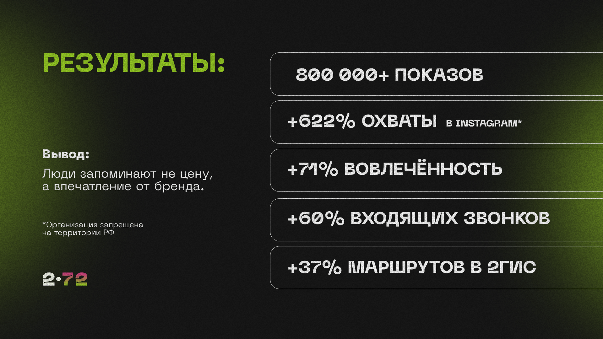 Вовлеченность: Охваты в Instagram* взлетели на 622%, а активность в соцсетях выросла на 71%.