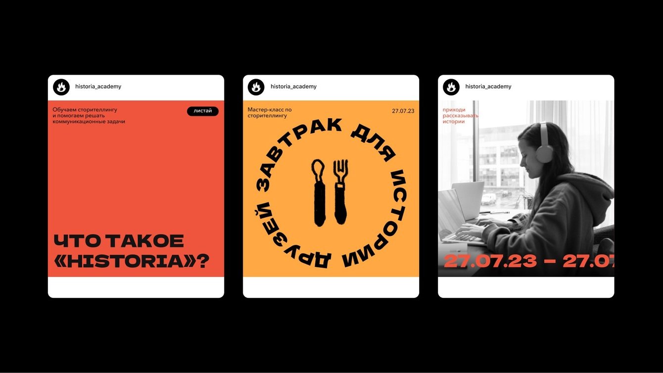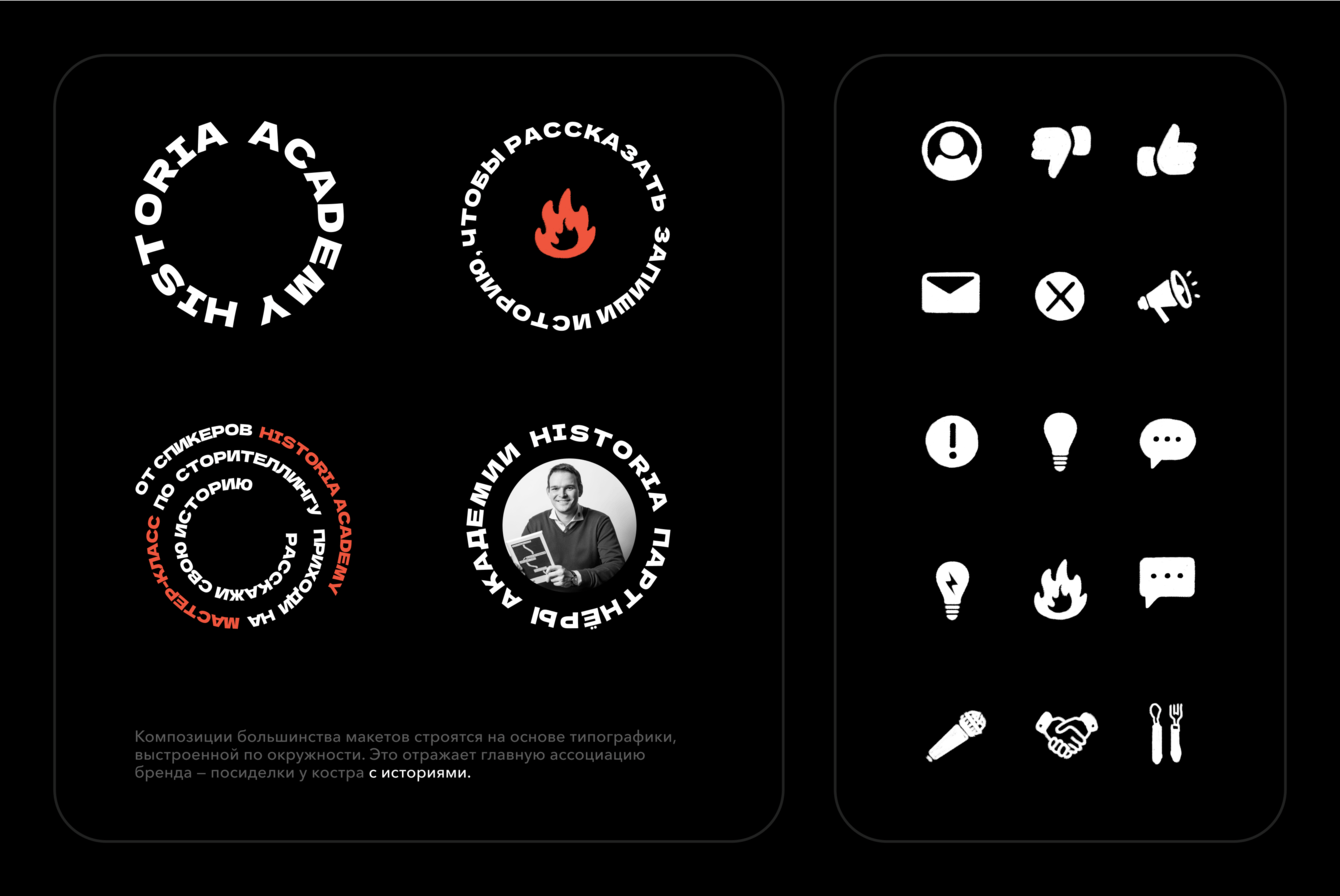По итогам нашей работы мы получили довольного заказчика — основателя Артём Мушина-Македонского и новый визуальный стиль, который помогает его компании правильно отражать ценности. Брендинг с ассоциацией историй с костром, вокруг которого их обычно рассказывают, запоминается своим креативным подходом и точно передаёт атмосферу дружелюбности и общности Historia Academy.