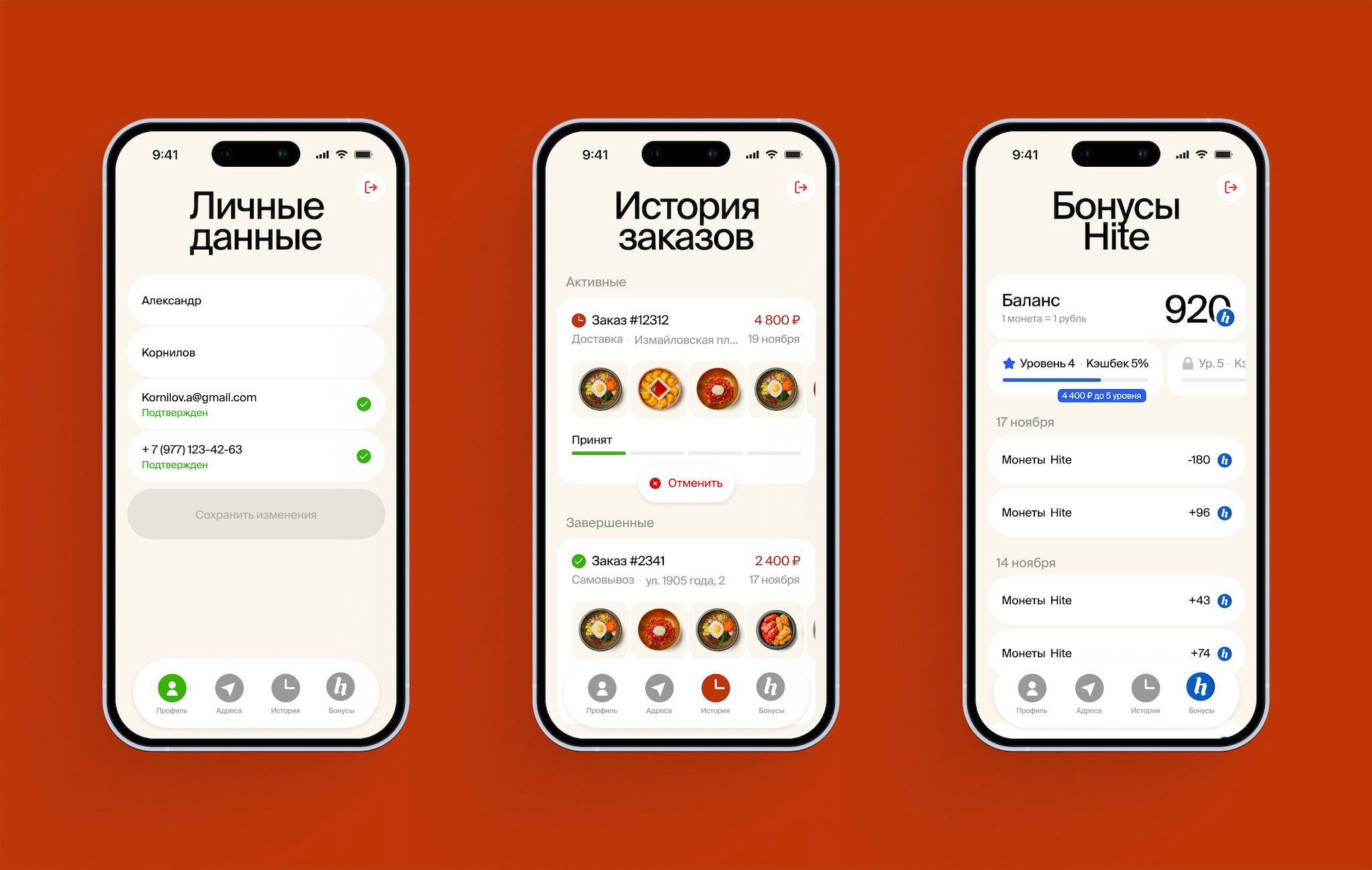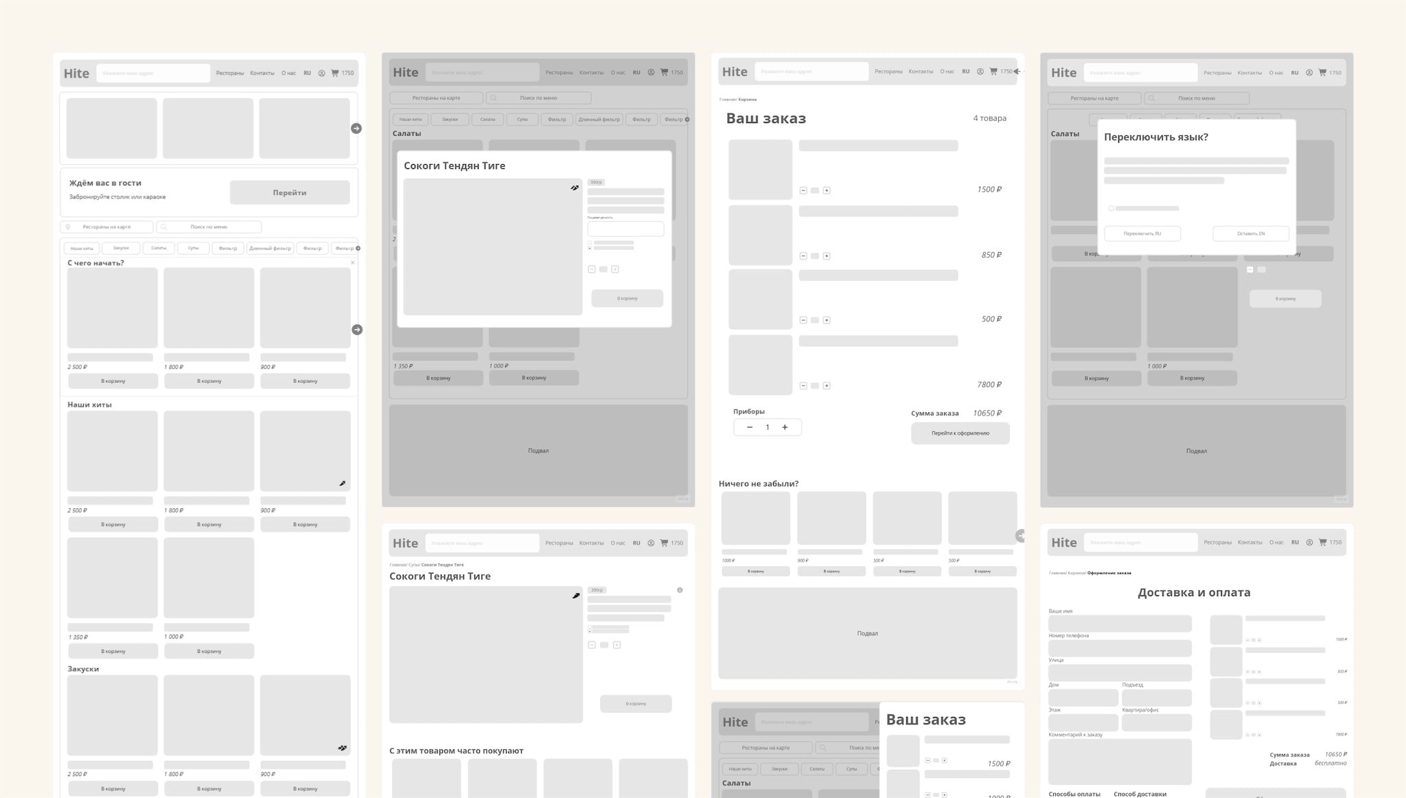 Помимо удобства заказа необходимо было обновить дизайн сайта, сделать его легким, современным и созвучным ценностям HiteBBQ. Он должен передавать атмосферу домашнего уюта, тепла, но при этом подчеркивать премиальный уровень заведения.