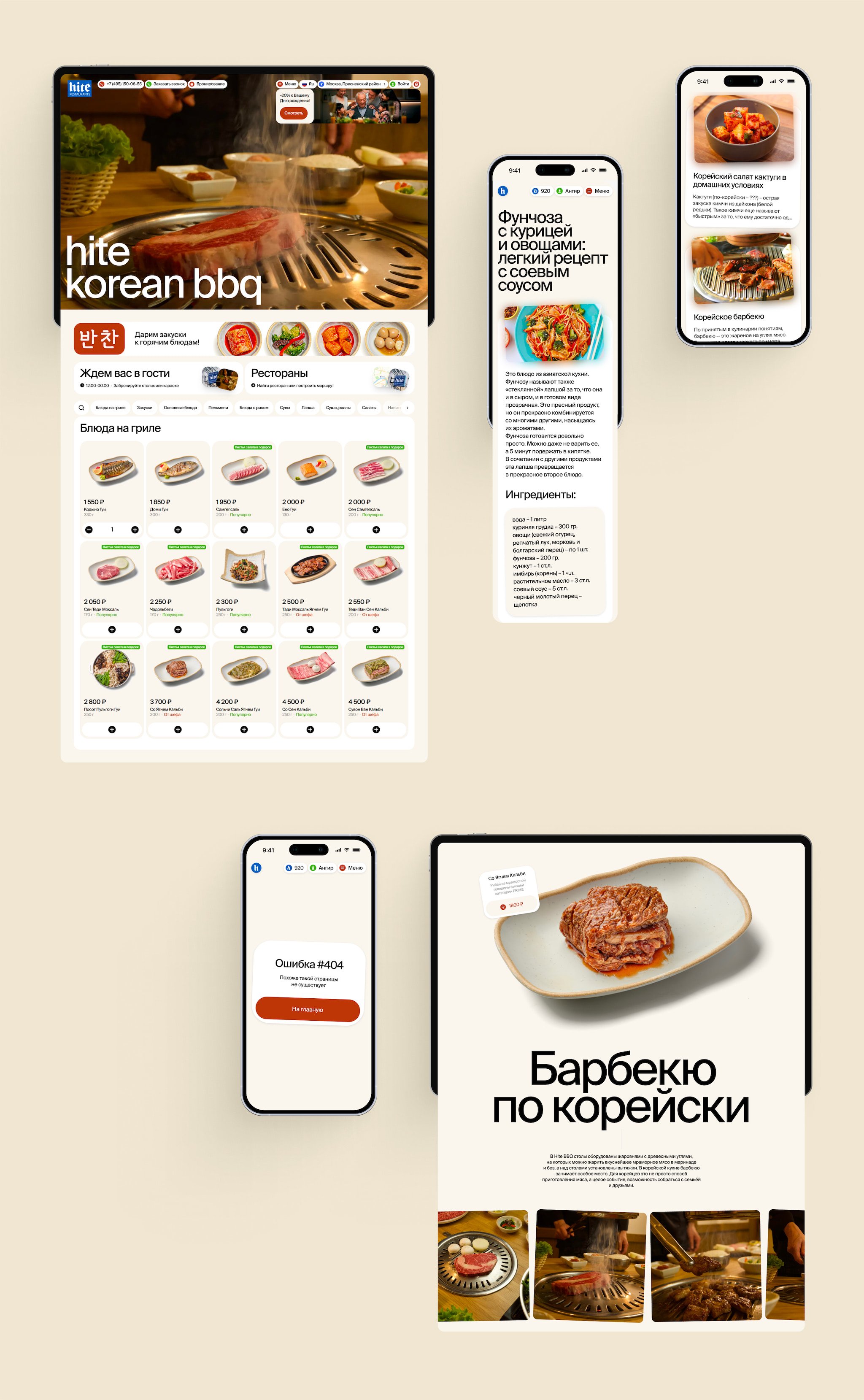 На сайте появились обновленные страницы о самих ресторанах Hite BBQ, об истории и философии компании — на них рассказали о корейской кухне и культуре, о рецептах популярных блюд и аутентичных корейских продуктах.