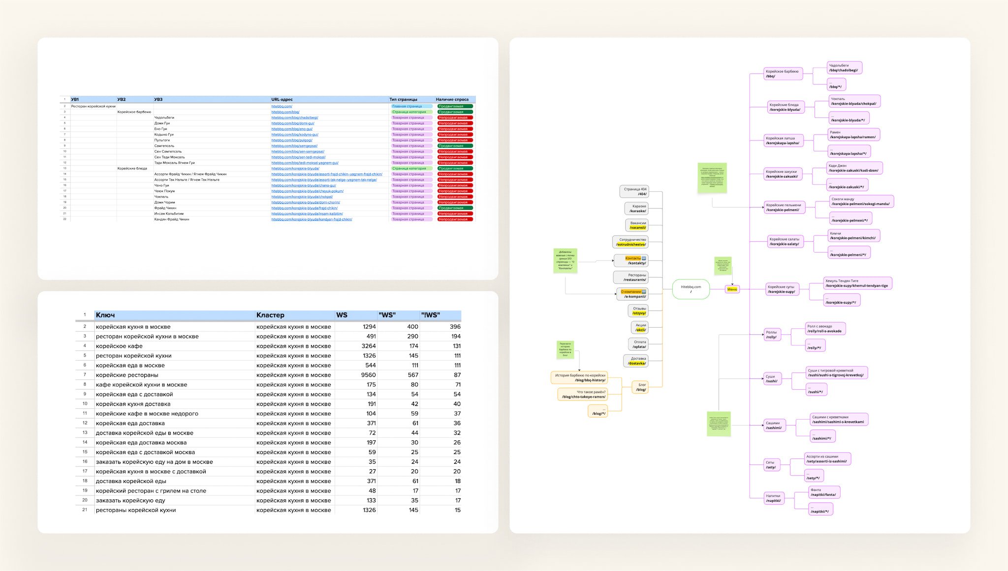 Для полноты картины мы изучили сервисы конкурентов: сайты схожие по семантике и тематике, сайты ресторанов в Корее.