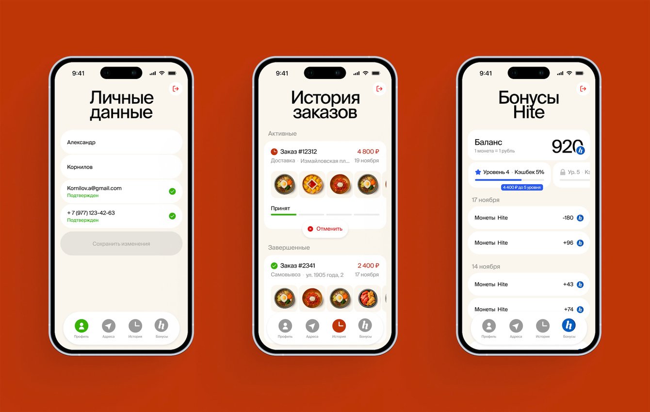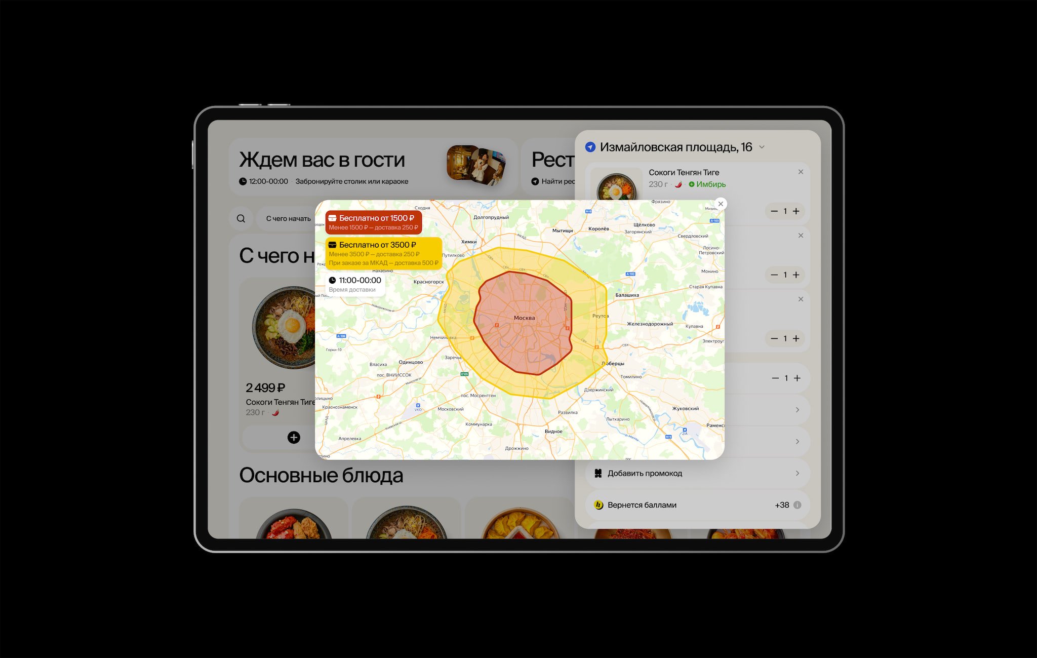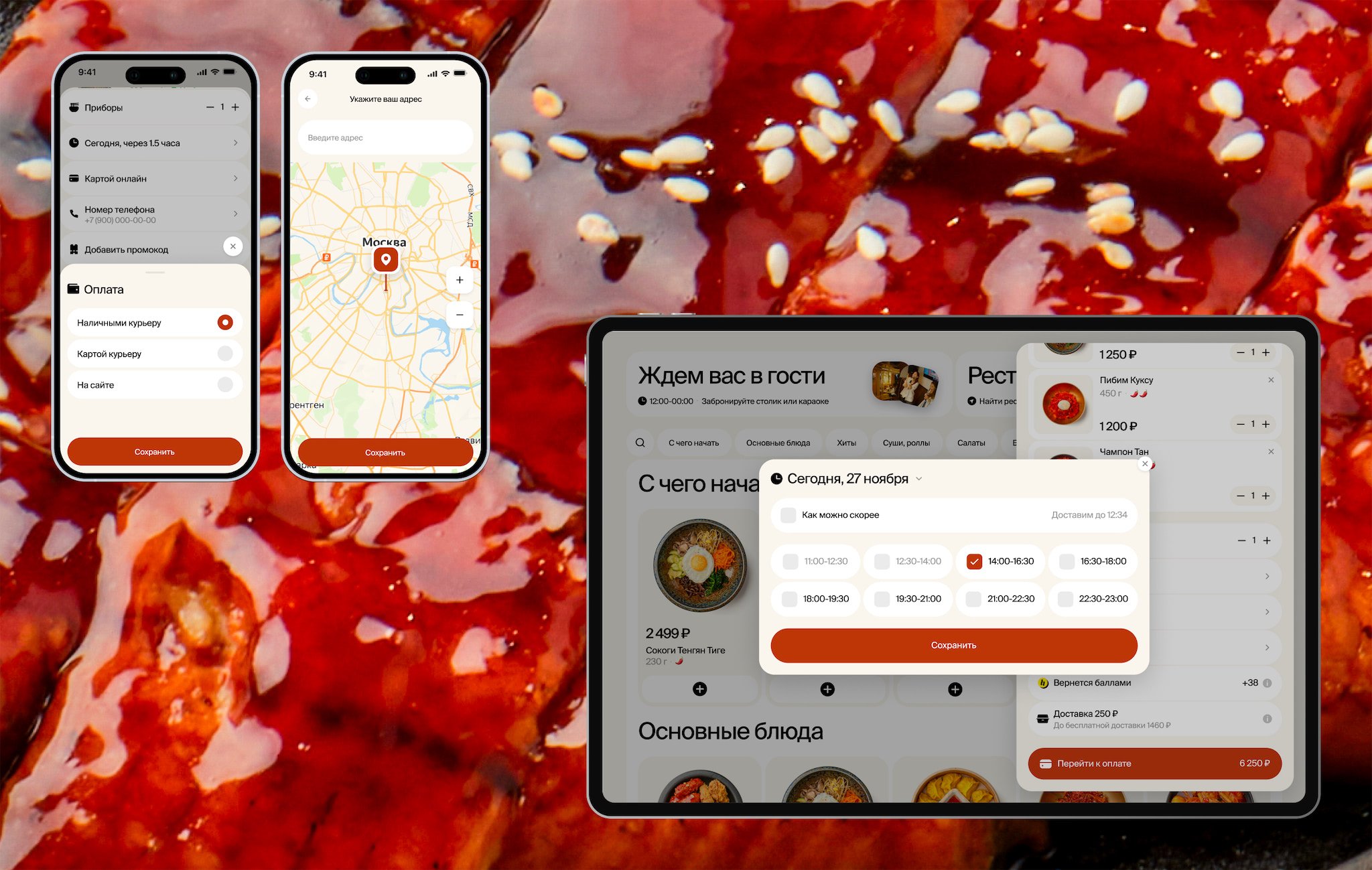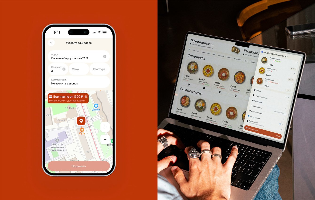 В первую очередь мы ориентировались на функциональную задачу — сделать удобный сервис заказа, такой же простой и понятный, как у лидеров сегмента доставки готовой еды. Мы хотели, чтобы клиенты ресторана могли быстро выбрать блюда, легко оформить заказ, а затем получить свой обед или ужин без задержек.
