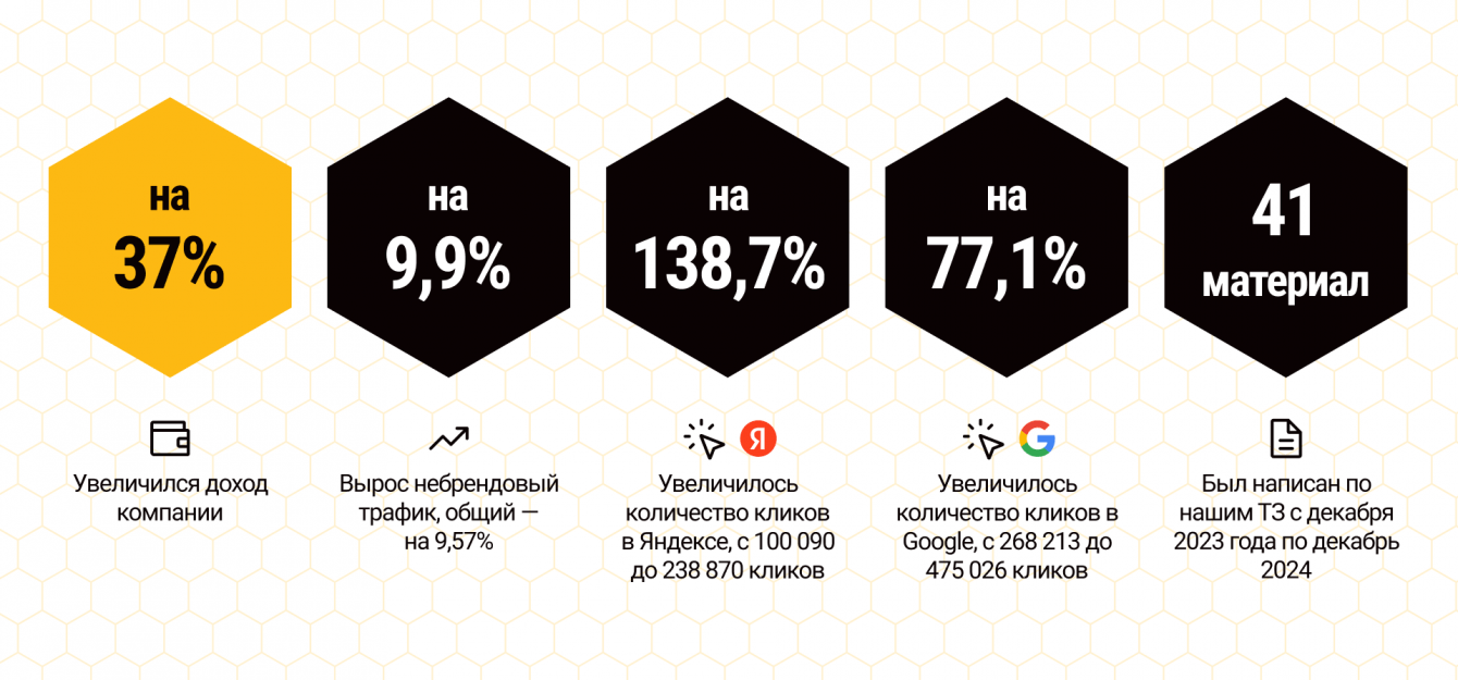 ↗️ 41 материал был написан по нашим ТЗ с декабря 2023 года по декабрь 2024.