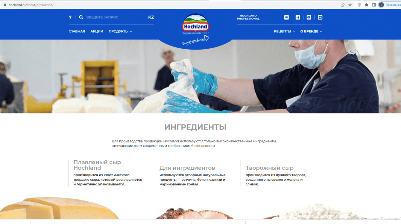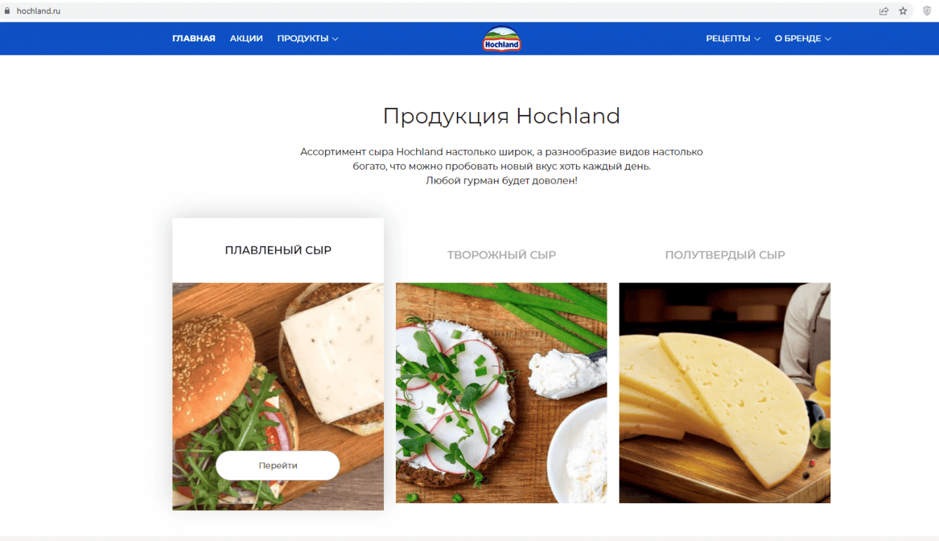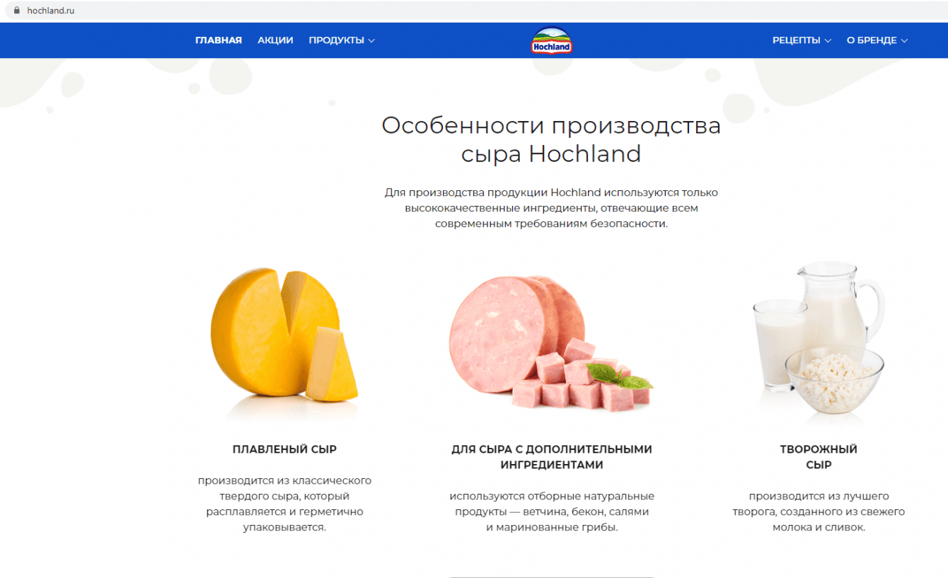 Создать корпоративный сайт для бренда Hochland