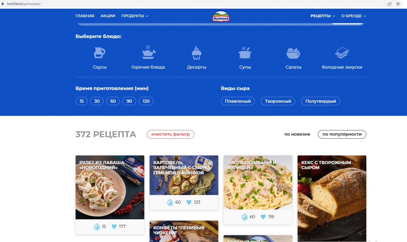 -посмотреть вкусные рецепты с использованием сыров Hochland.