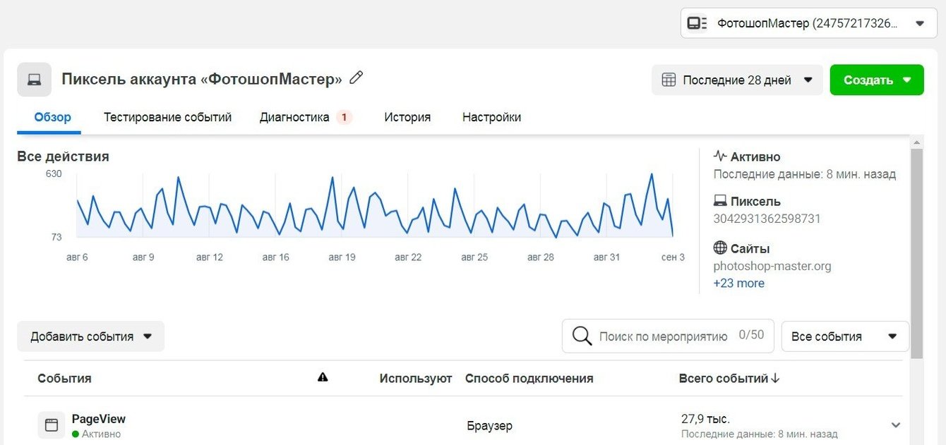 На сайте уже изначально был установлен Пиксель. С помощью пикселя навесили событие конверсии «Покупка» для оптимизации показа рекламы фейсбук, на тех людей, кто с большей вероятностью будет оплачивать курсы. Конверсия показывала сколько людей проявили интерес к оплате курса.