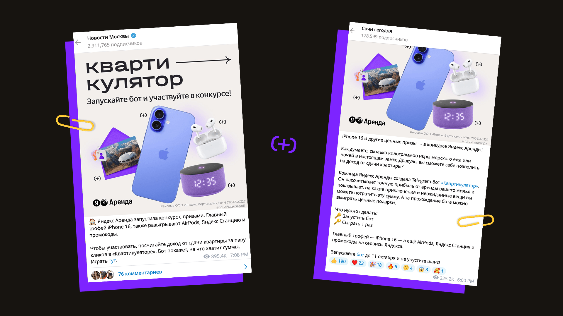 — Пост о начале розыгрыша в канале «Яндекс Аренда | Сдаю» посмотрели 206К человек.