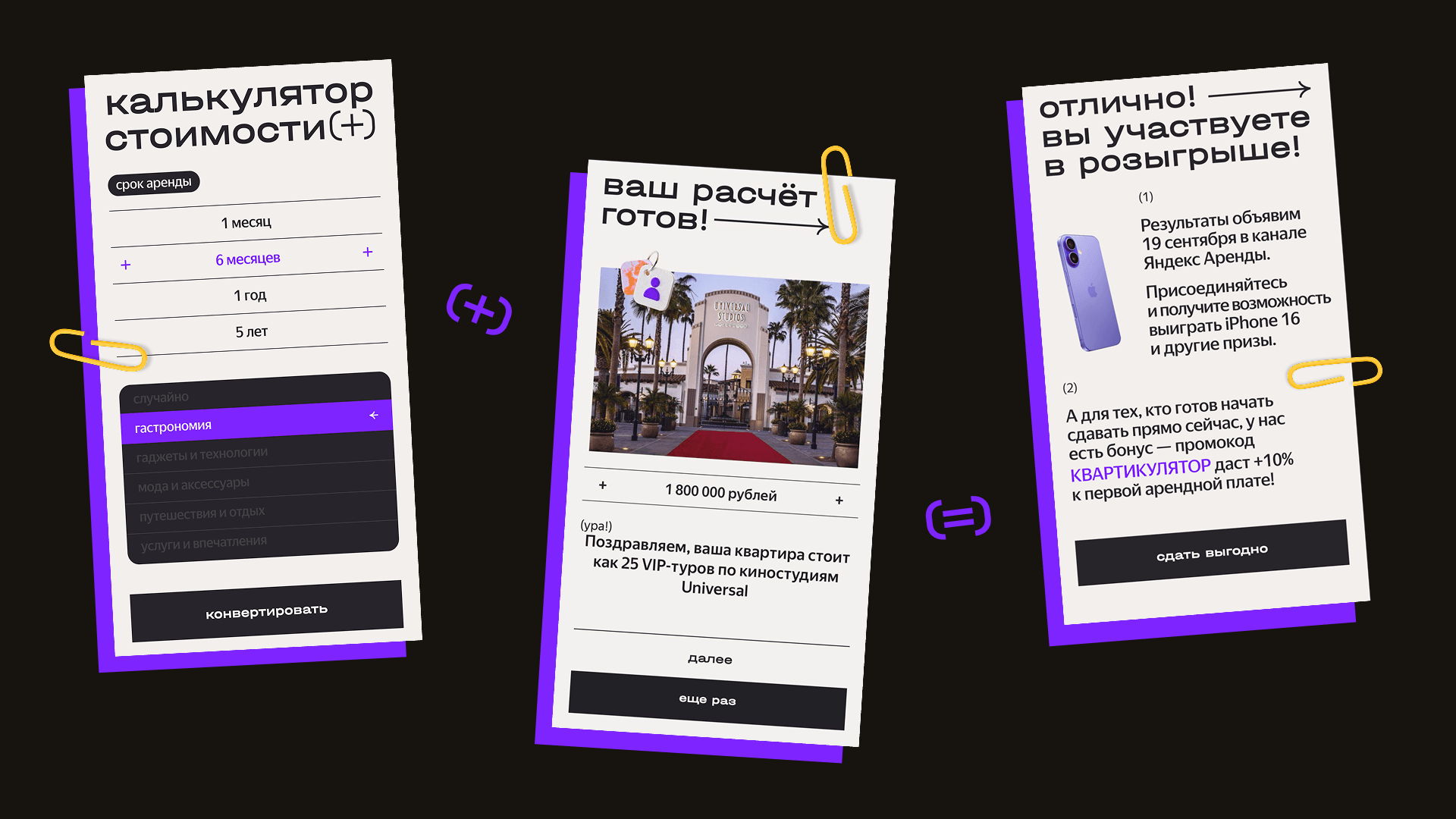 5. В конце игры — ссылка на лендинг Яндекс Аренды и бонус +10% к первой арендной плате от сервиса.