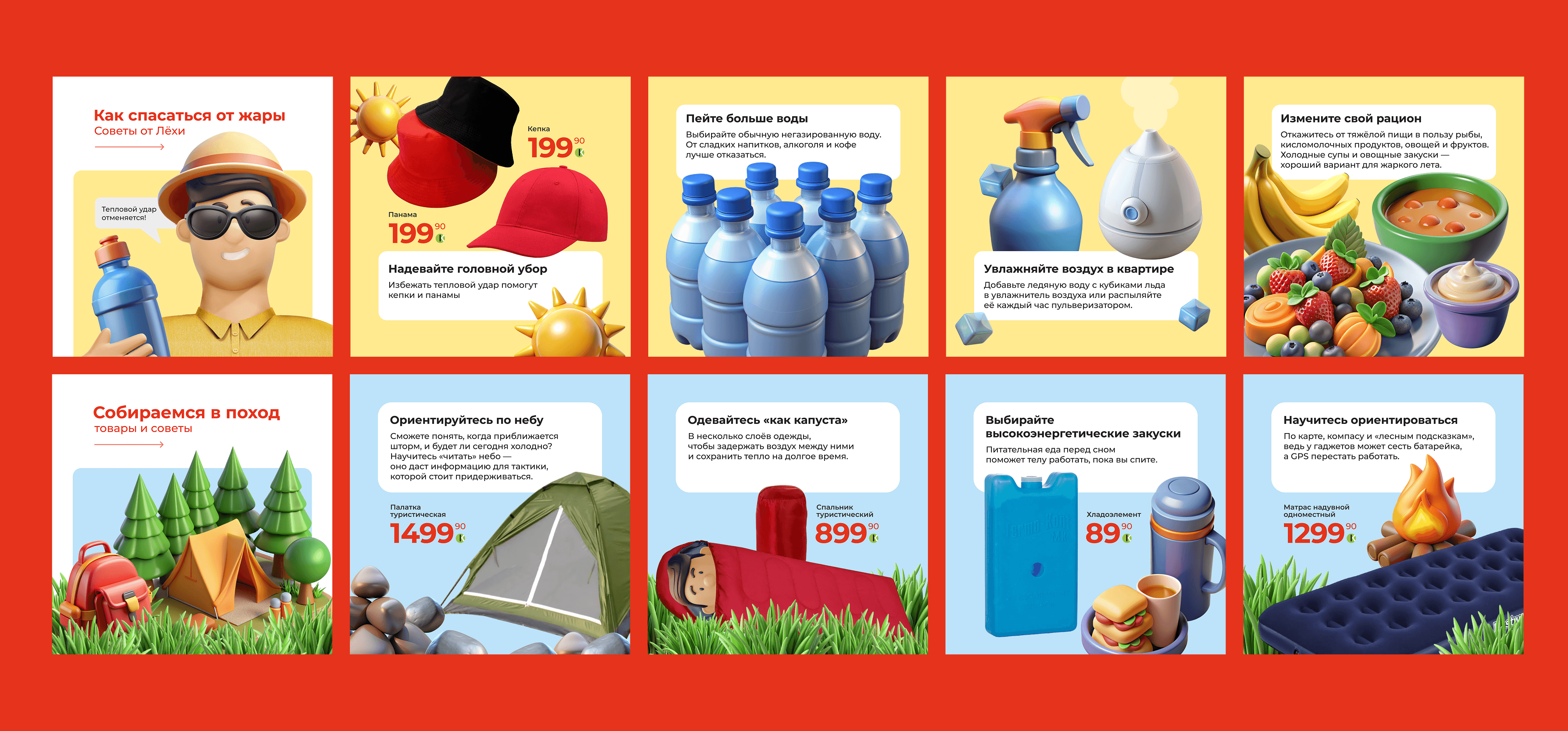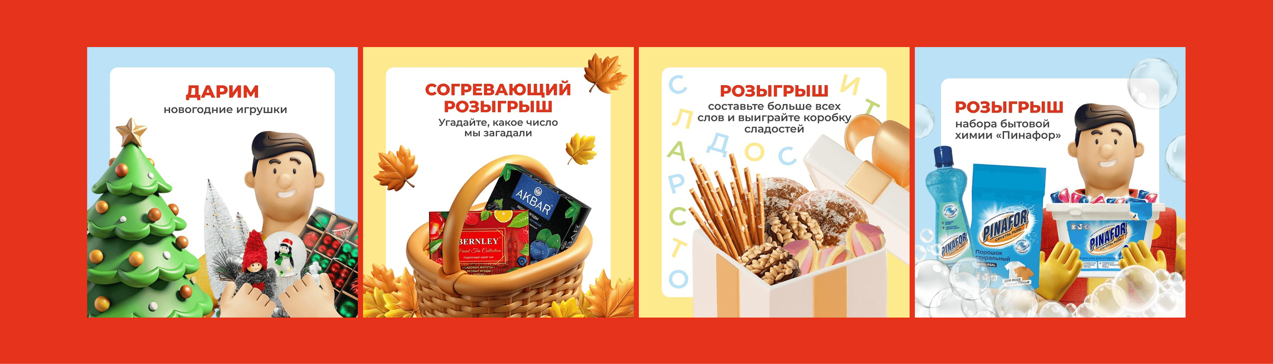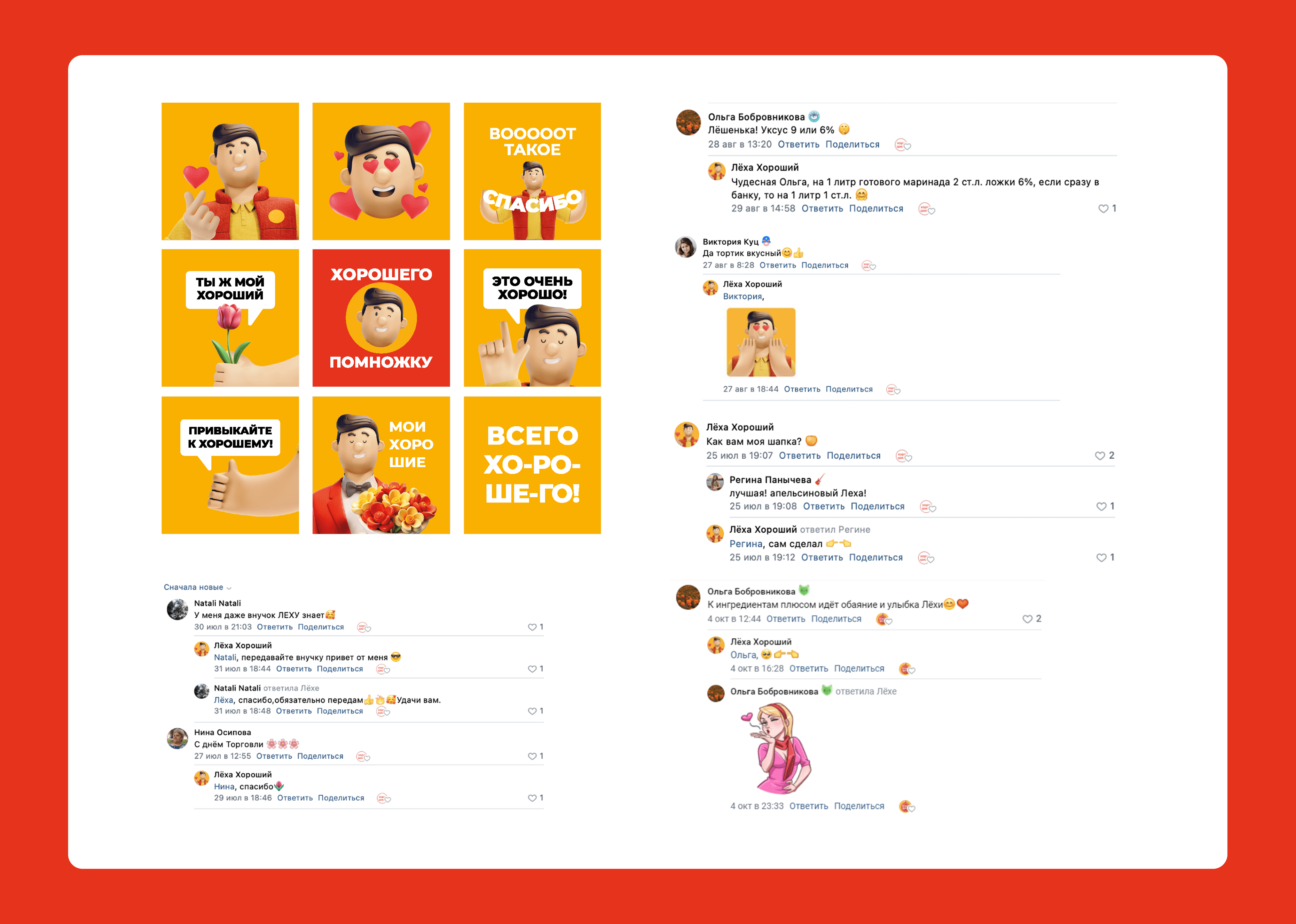 У дискаунтера уже был узнаваемый маскот — 3D-персонаж Лёша Хороший, которого покупатели знали по офлайн-коммуникации. Мы решили, что Лёша вполне готов к расширению полномочий, и вывели его в соцсети.