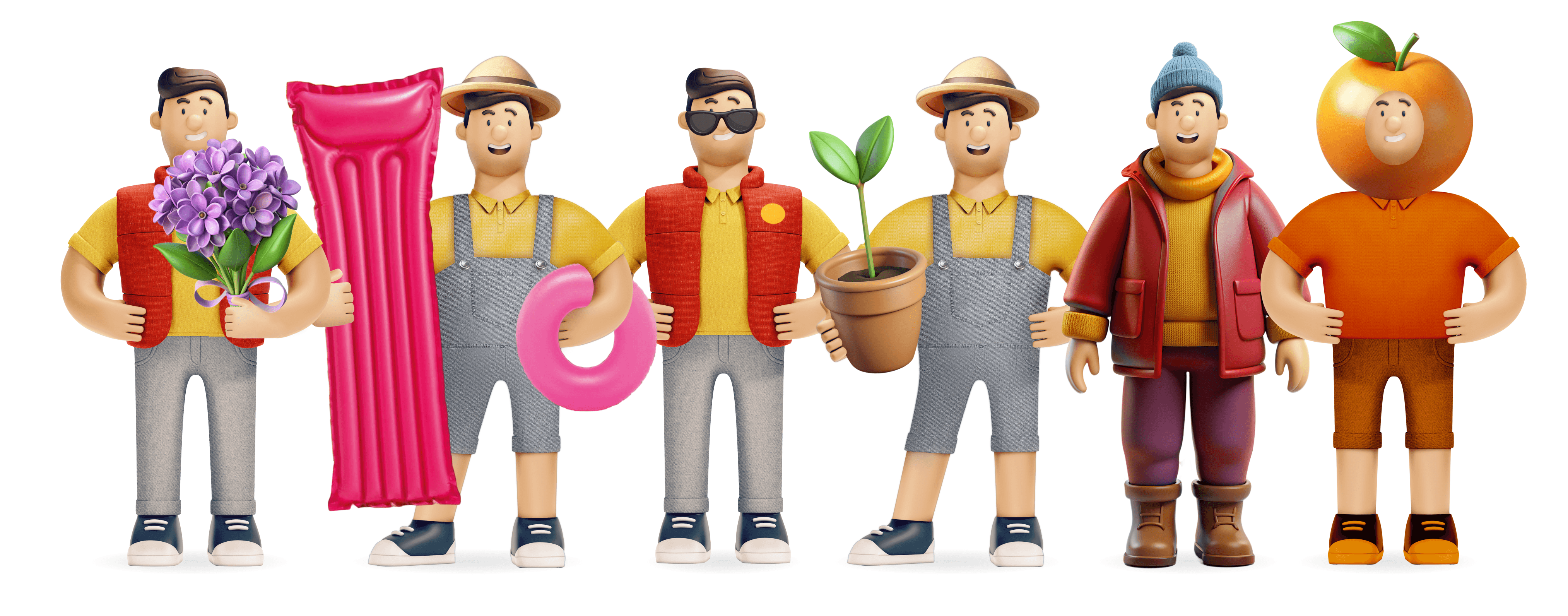 Лёша — живой и многогранный персонаж, который постоянно меняется. Мы разработали иконографию героя, адаптируя его внешний вид под разные ситуации — от праздничных поводов до бытовых сцен. Лёша не только органично вписался в коммуникацию с подписчиками, но и стал частью продающего контента.