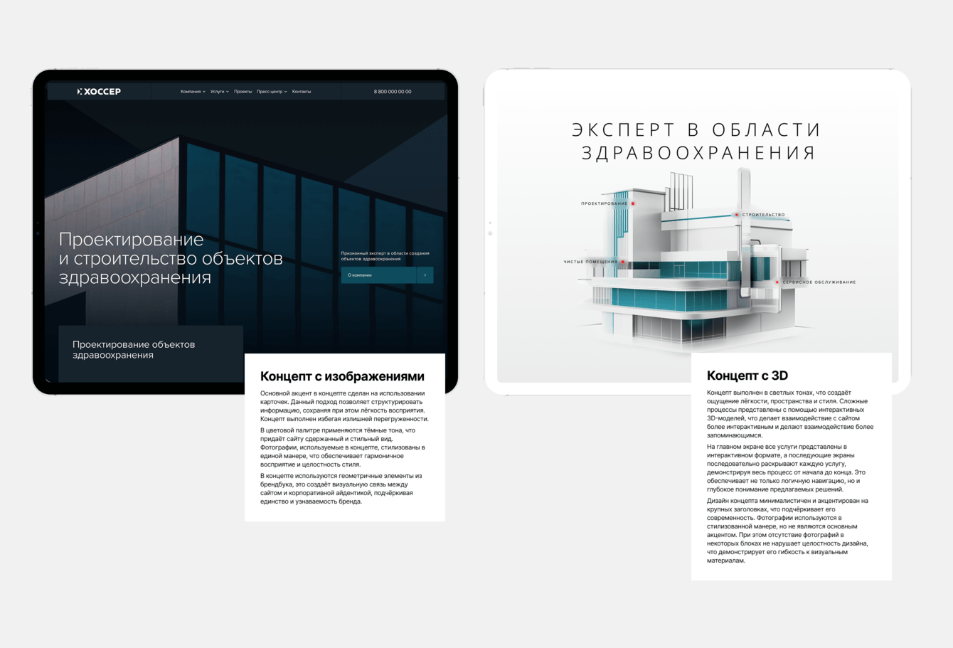 Компания «Хоссер» проектирует и строит медицинские учреждения: от чистых помещений до новых объектов и капитальных ремонтов. Делают они это с учётом требований медицинской практики и современных строительных технологий, поэтому заказчик получает комплексное решение «под ключ». Фокус – создание высокотехнологичных объектов здравоохранения на территории РФ и СНГ.