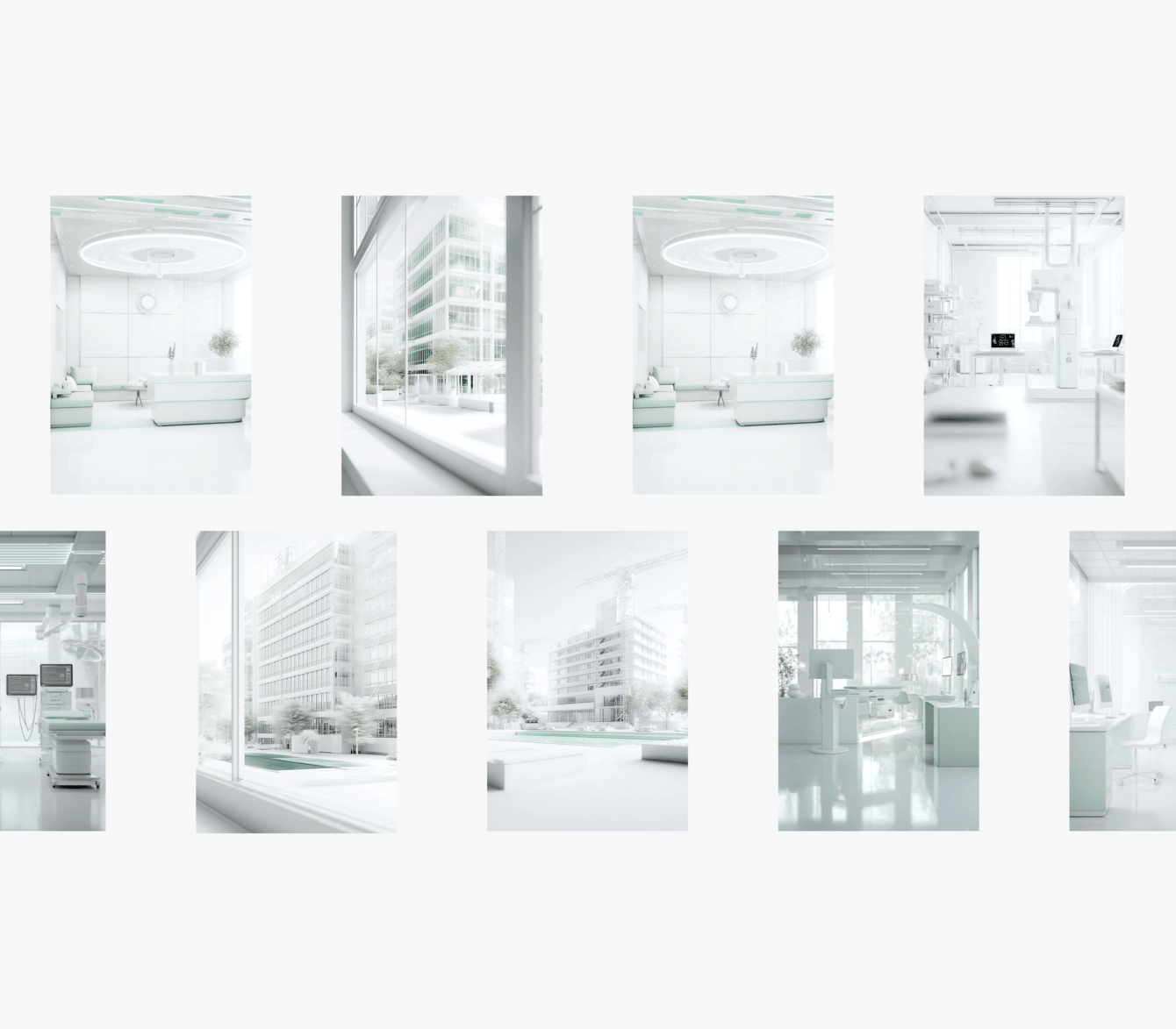Ключевой вызов: как показать медобъект и чистые комнаты так, чтобы это не было очередной фотографией коридора или операционной? К сожалению, взять и просто поработать с чертежами реальной клиники мы не могли, так как детальная планировка относится к чувствительной информации по безопасности.