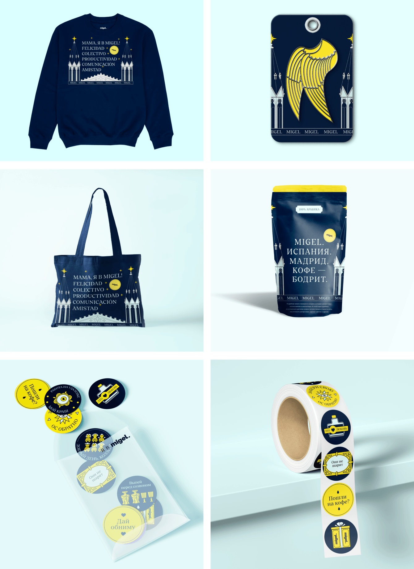 С целью продемонстрировать нашу доброжелательность, обозначить ценности агентства и транслировать нашу корпоративную культуру, мы разработали welcome pack для новых сотрудников. В него вошли толстовки, шопперы, кофе, эмалированные значки, а также онлайн-стикеры в Telegram и стикеры-наклейки.