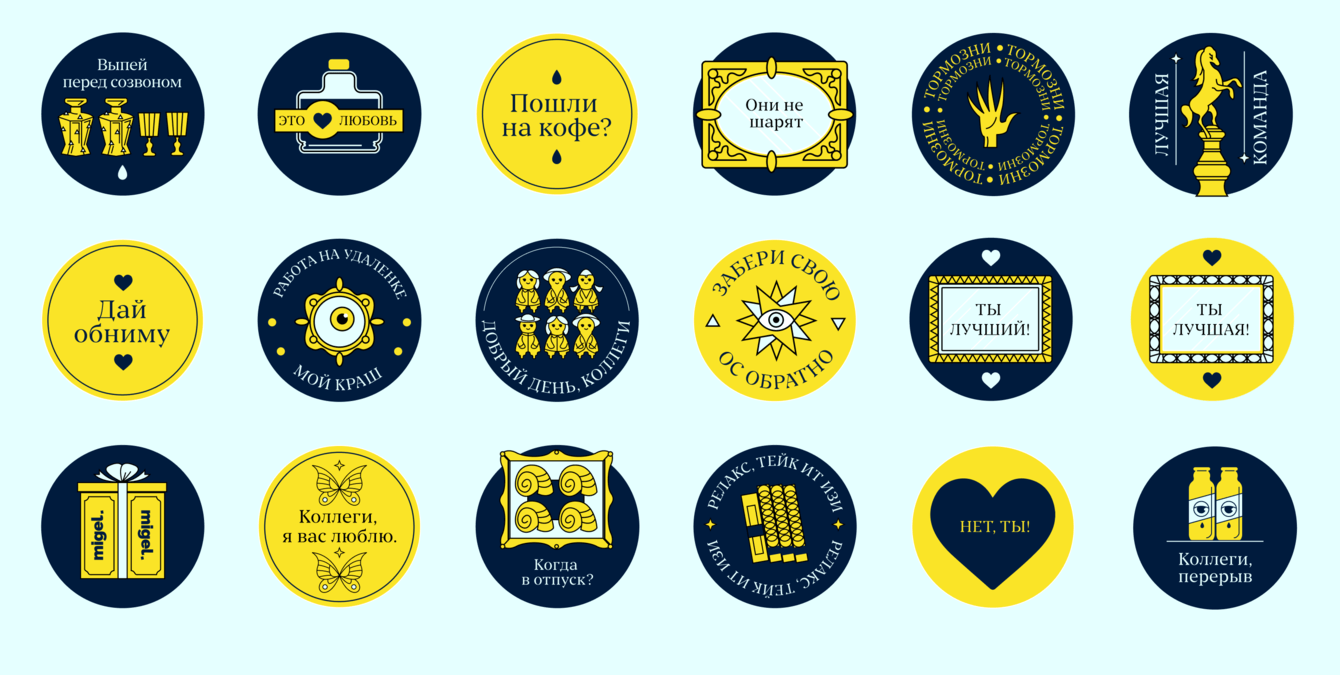 В визуал мы заложили фирменный стиль нашего hr-сайта, а во фразах для мерча и стикеров постарались отразить наши ценности, связанные с командной работой, — в офисе и на удаленке. Для нас это: юмор, взаимопонимание, поддержка коллег и любовь к своему делу.