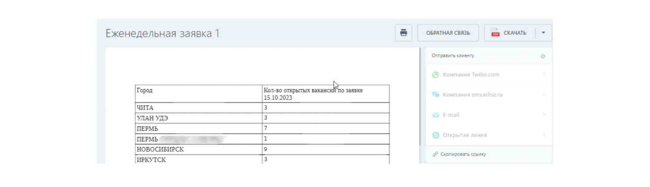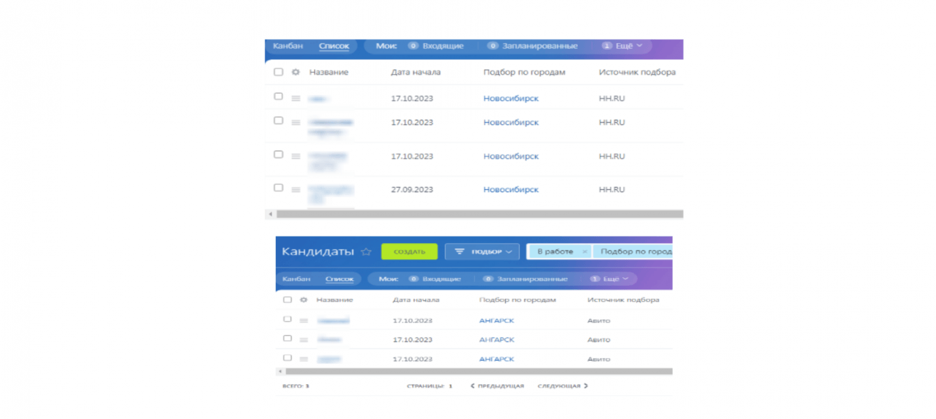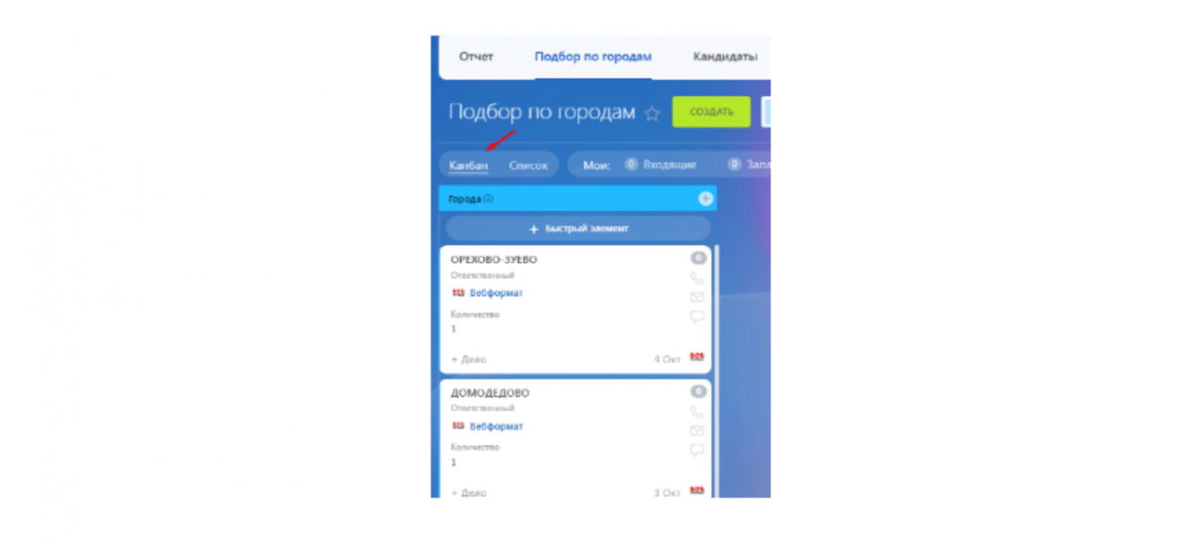 Информация по количеству требуемого персонала в каждом городе обновляется в каждой карточке города. За каждый город есть ответственный рекрутер. И таким образом каждый понедельник у рекрутера есть информация сколько кандидатов нужно найти в каждом городе.