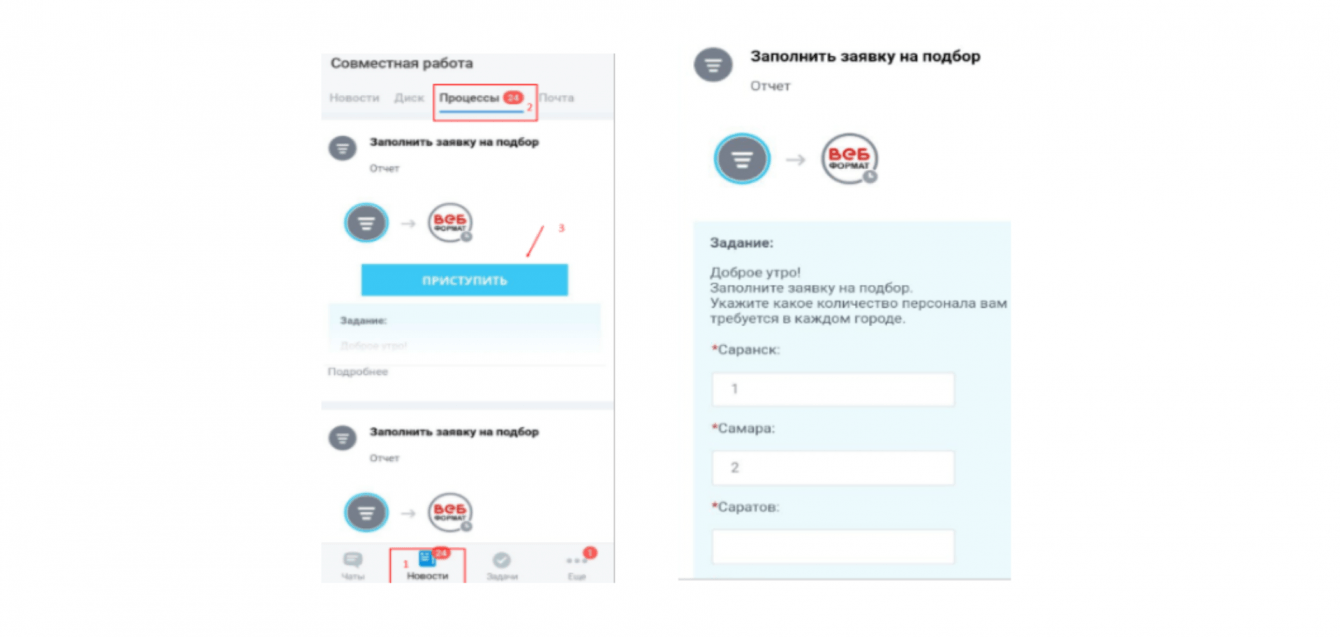 Так же заявку на подбор можно заполнить через мобильное приложение Битрикс24. То есть необязательно иметь компьютер под рукой для этих целей.