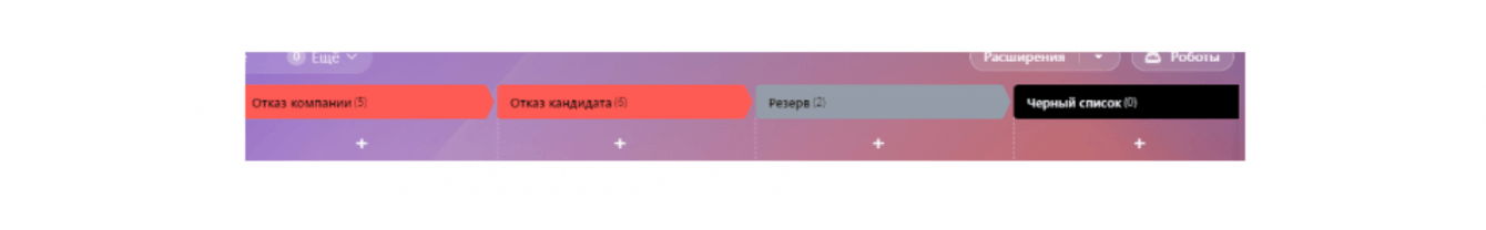 Если выбраны варианты «Отказ компании», «Отказ кандидата», «Резерв» и «Черный список», то карточка кандидата переходит в аналогичную стадию в воронке, а комментарий переходит в поле «Причина отказа».