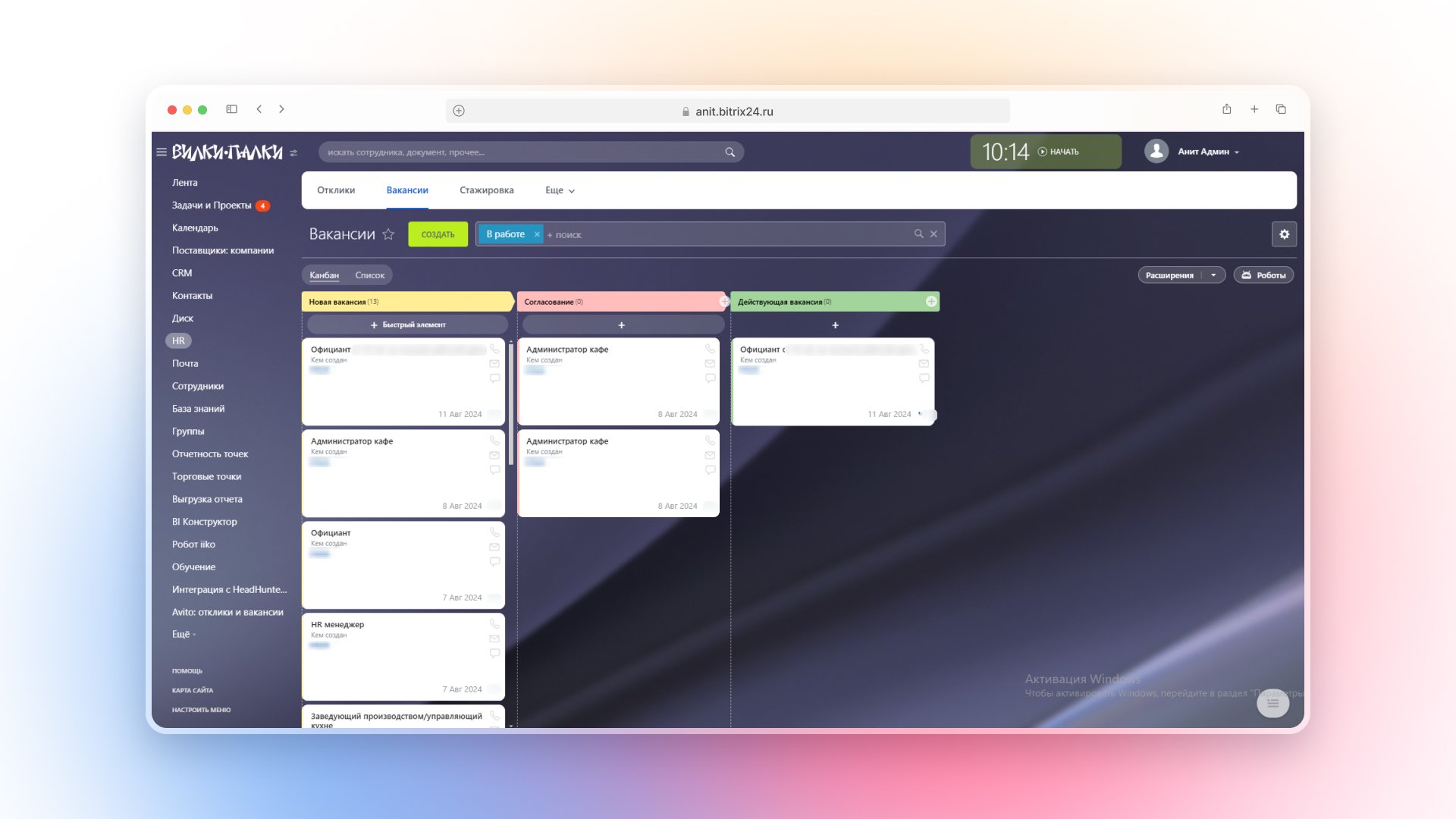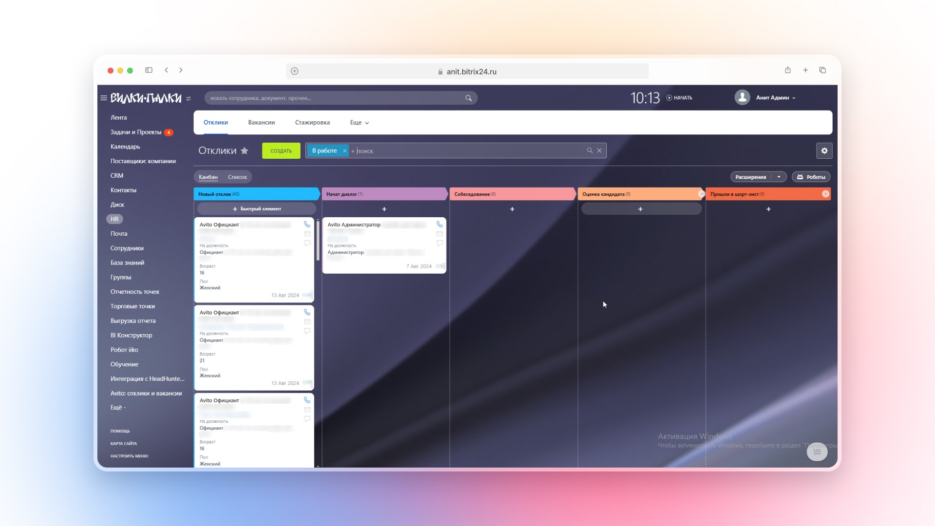 Основной задачей стало создание единой, автоматизированной системы на базе Битрикс24, которая охватила бы все ключевые этапы найма и адаптации — от публикации вакансии до оценки эффективности новых сотрудников.