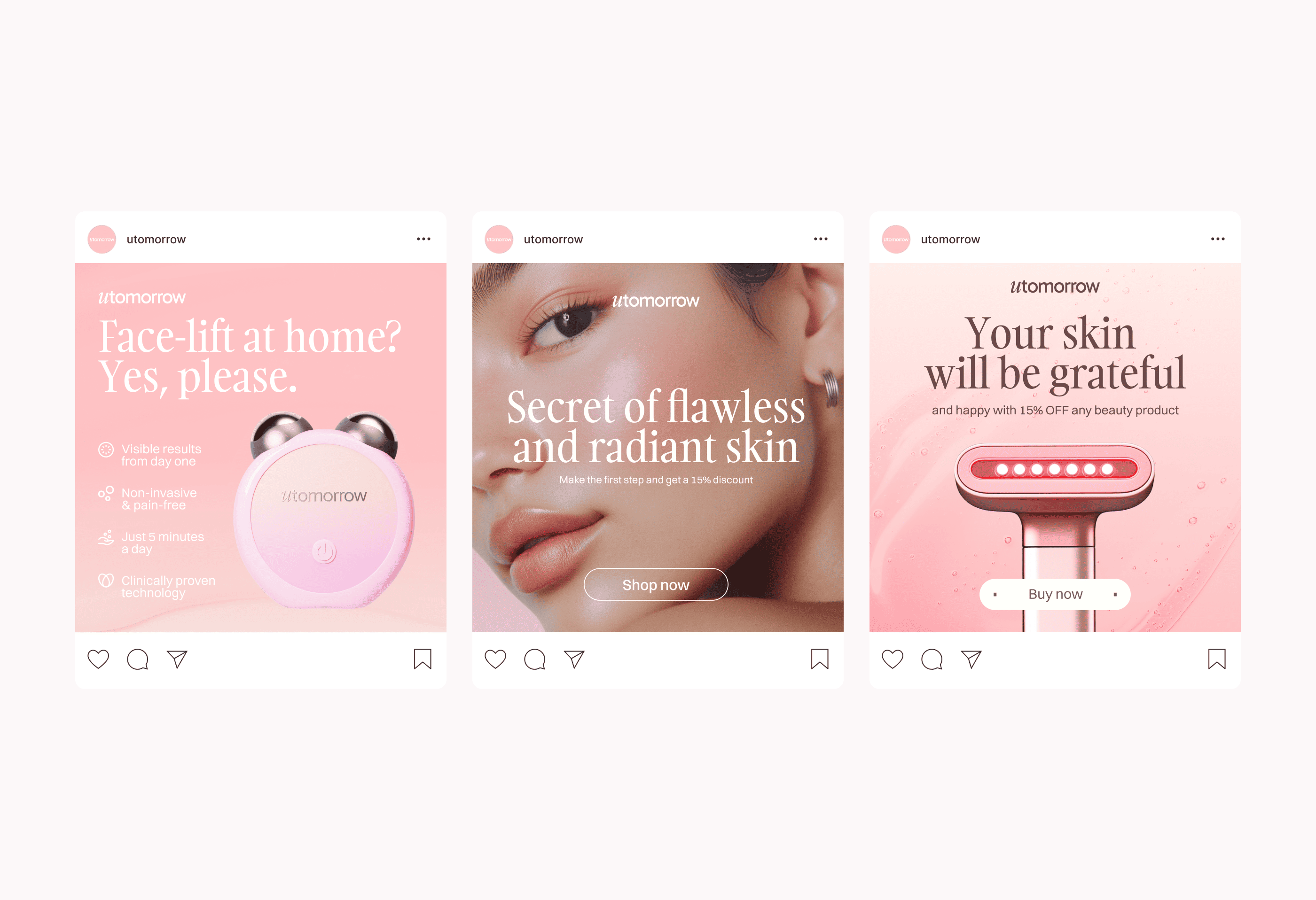 Когда к нам пришли ребята из Utomorrow, они хотели запустить не просто продукт, а бренд с характером — и при этом не попасть в шаблоны индустрии. Мы с самого начала понимали, что задача сложная: рынок бьюти-гаджетов перегрет, доверие пользователей — на низком старте, а бюджет ограничен. Поэтому сделали ставку на системную работу: точная сегментация, честные месседжи, воронка без воды.