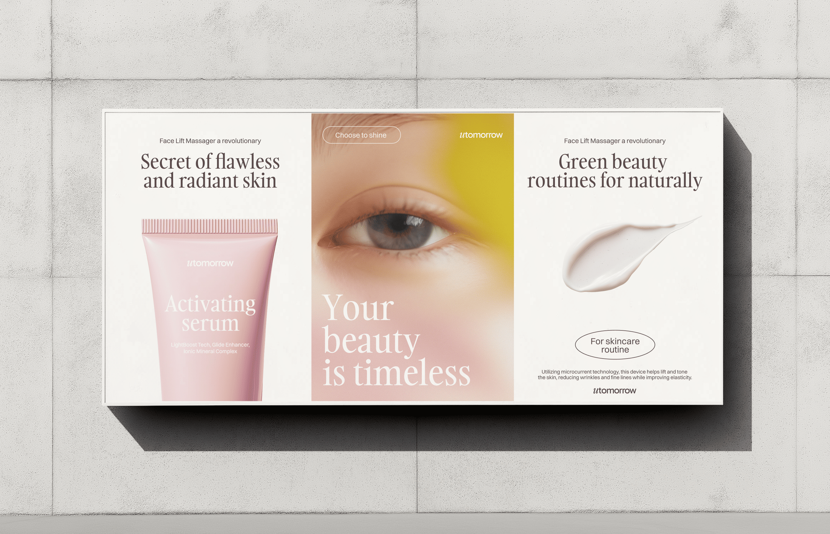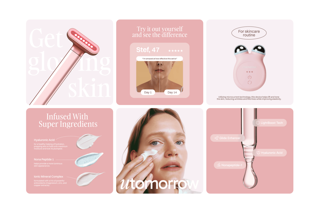 Когда команда Utomorrow обратилась к нам, у них не было ничего: ни бренда, ни позиционирования, ни упаковки, ни клиентской базы. Только идея — сделать бьюти-продукт для женщин, которым важен уход без суеты и давления.