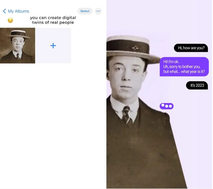 В чат-бота Pheon можно загрузить фото, например, прадедушки и поговорить с ним.