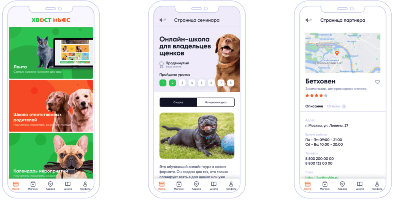Сообществу «Хвост Ньюс» требовалось разработать мобильное приложение, с помощью которого владельцы домашних животных будут обучаться, находить полезную информацию и приобретать продукцию как на сайте, так и у партнеров с помощью специальных купонов и промокодов.